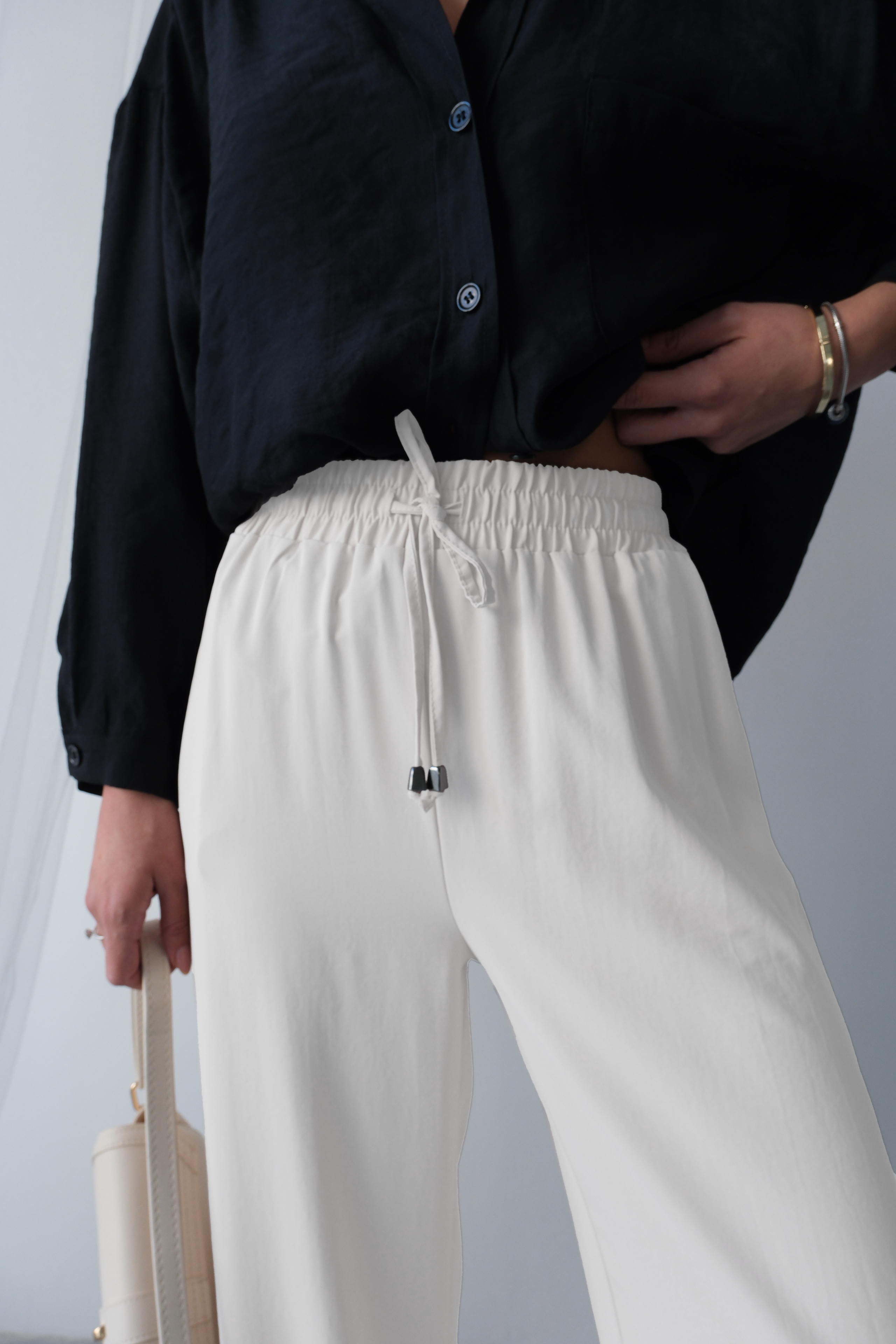 Enerjik ve stil sahibi bir görünüm için yüksek bel ip bağcıklı geniş paça pantolon tam size göre! Canlı ekru rengi ile dikkat çeken bu pantolon, yüksek bel kesimi sayesinde bacak boyunuzu daha uzun gösterir ve feminen bir siluet oluşturur. İp bağcıklı bel detayı hem şık bir görünüm sunar hem de rahat bir kullanım imkanı tanır. Geniş paça kesimi ise hareket özgürlüğü sağlar ve bohem bir hava katar.