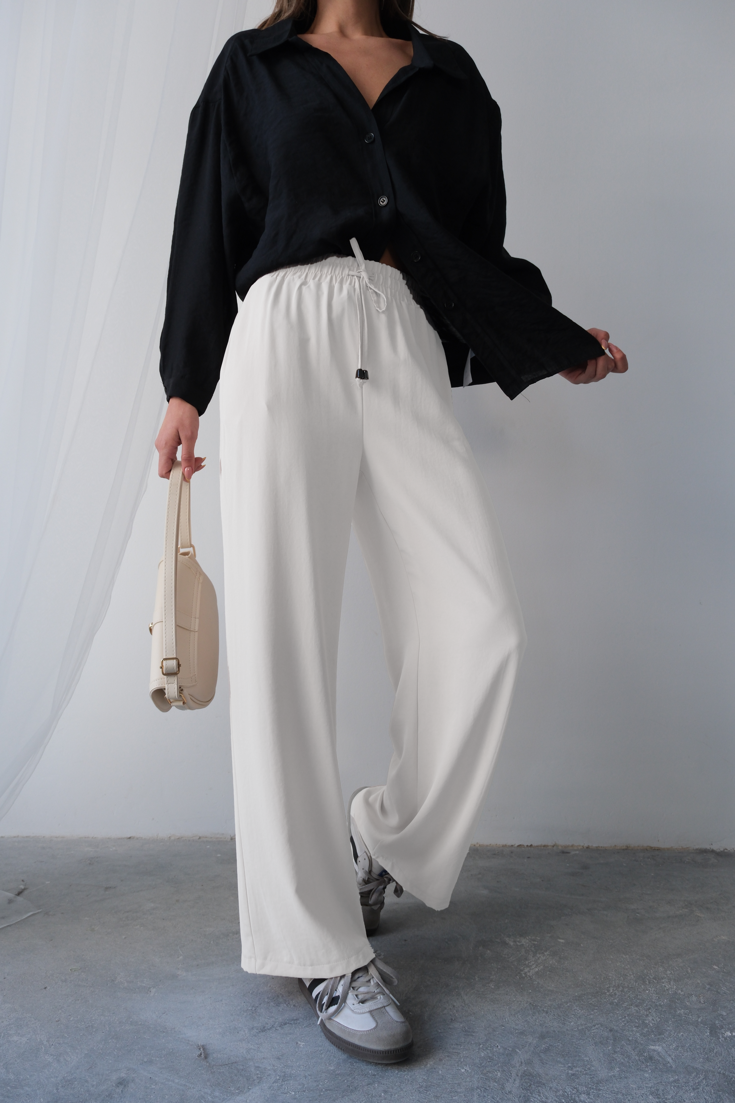Yumuşak ve hafif kumaşı sayesinde yazlık ve baharlık aylar için ideal bir tercih olan bu bol paça pantolon, crop toplar, tişörtler ve bluzlarla kolayca kombinlenebilir. Günlük kullanımda sandaletlerle rahat bir şıklık yakalayabilir, özel davetlerde ise topuklu ayakkabılarla daha iddialı bir görünüm elde edebilirsiniz.