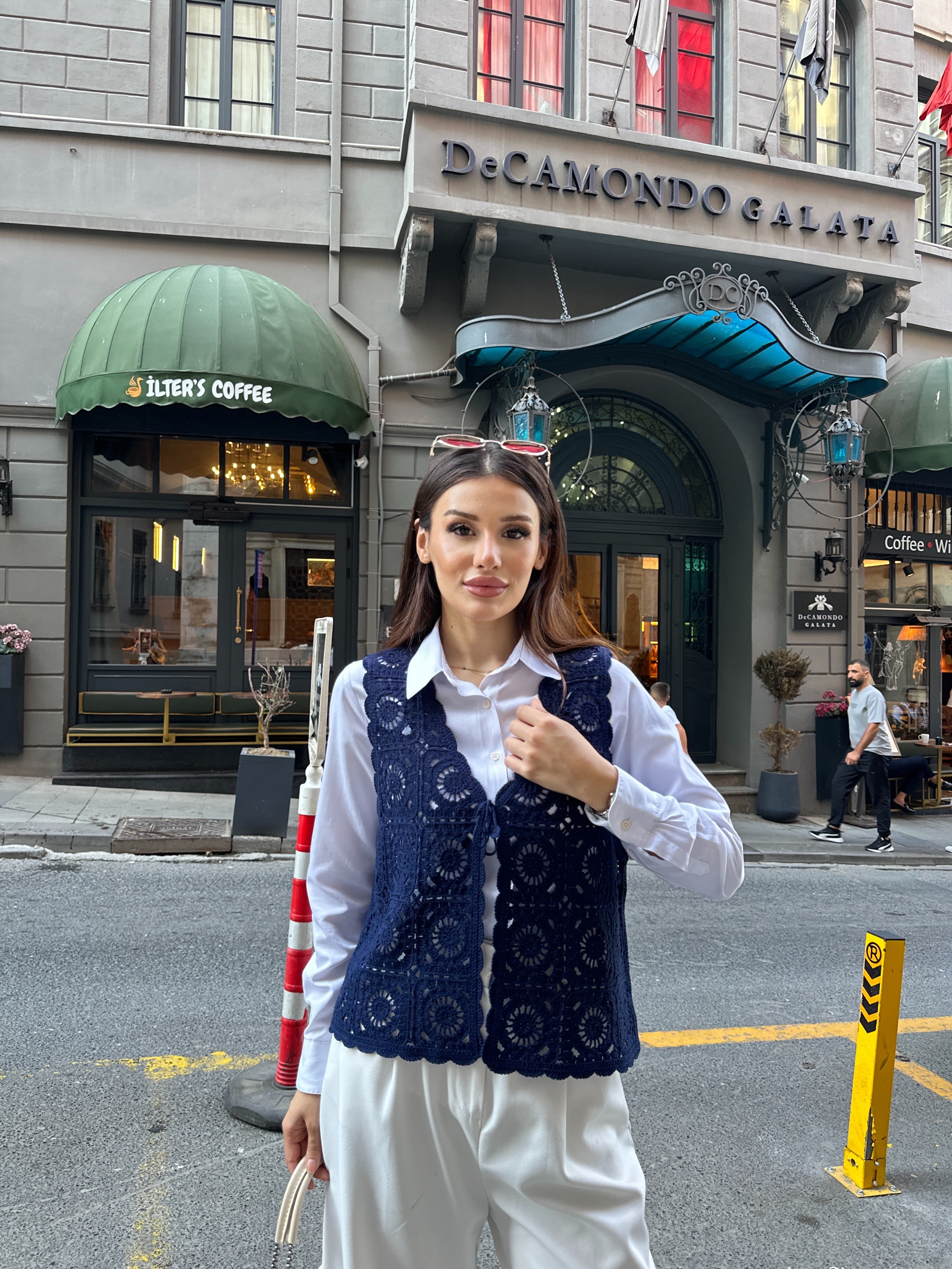 HatunAtila Çiçek Desenli Akrilik Süzene Yelek 5198 -  Lacivert