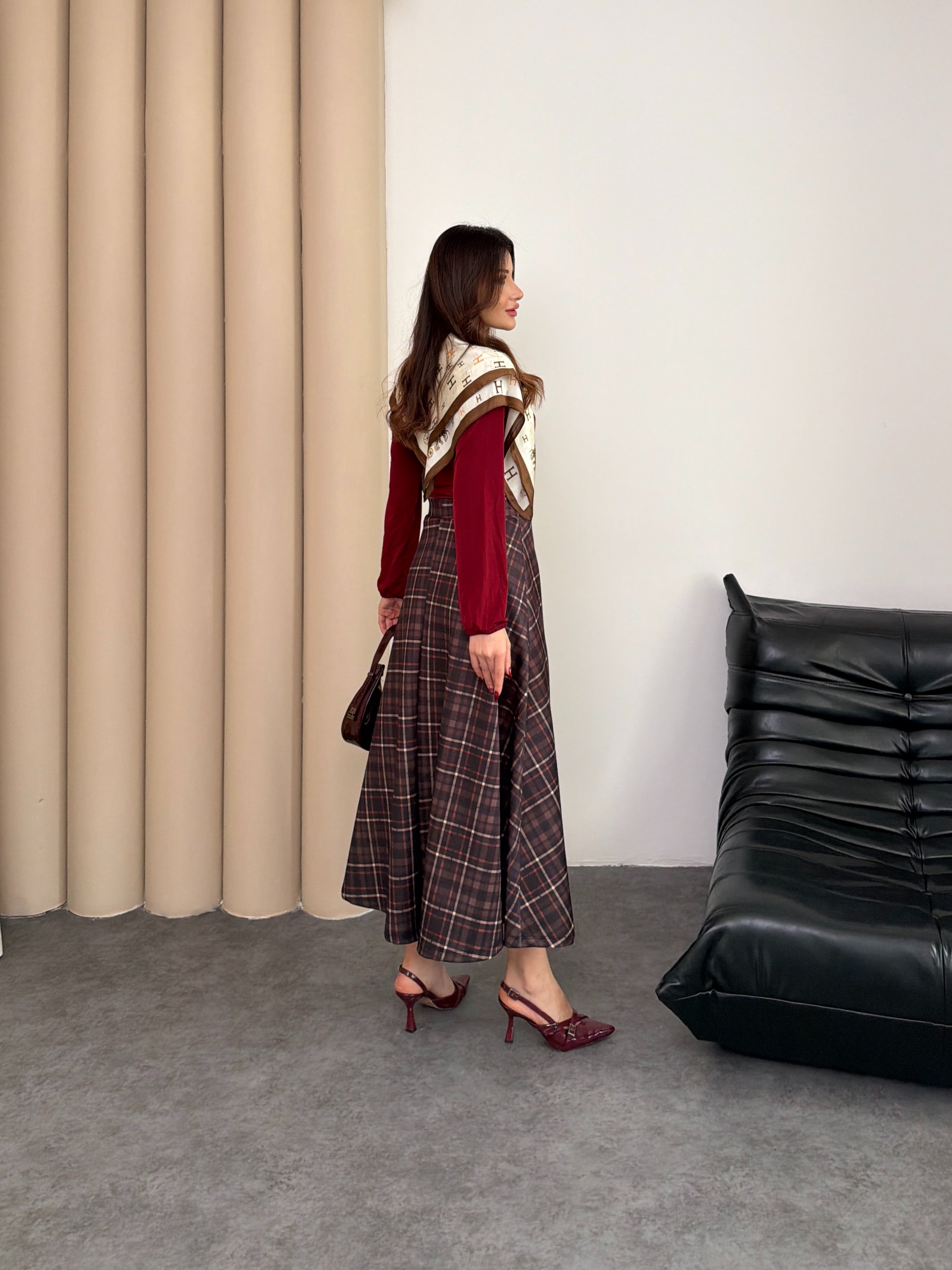 Klasik desenlerin modern dokularla buluştuğu Ekose Desenli Scuba Kumaş Etek hatunatila.com'da! Pürüzsüz ve tok duruşuyla bilinen scuba (dalgıç) kumaş, bu eteğe hem kusursuz bir form kazandırır hem de esnek yapısıyla gün boyu konfor sağlar. Ütü gerektirmeyen yapısı ve vücut hatlarını nazikçe toparlayan özelliğiyle gardırobunuzun kurtarıcısı olmaya adaydır. Zamansız ekose (kareli) deseni, kış ve sonbahar aylarında opak çoraplar, çizmeler ve triko kazaklarla harika bir uyum yakalar. Hem ofis şıklığı hem de hafta sonu gezmeleri için ideal olan bu ekose scuba eteği hemen keşfedin!