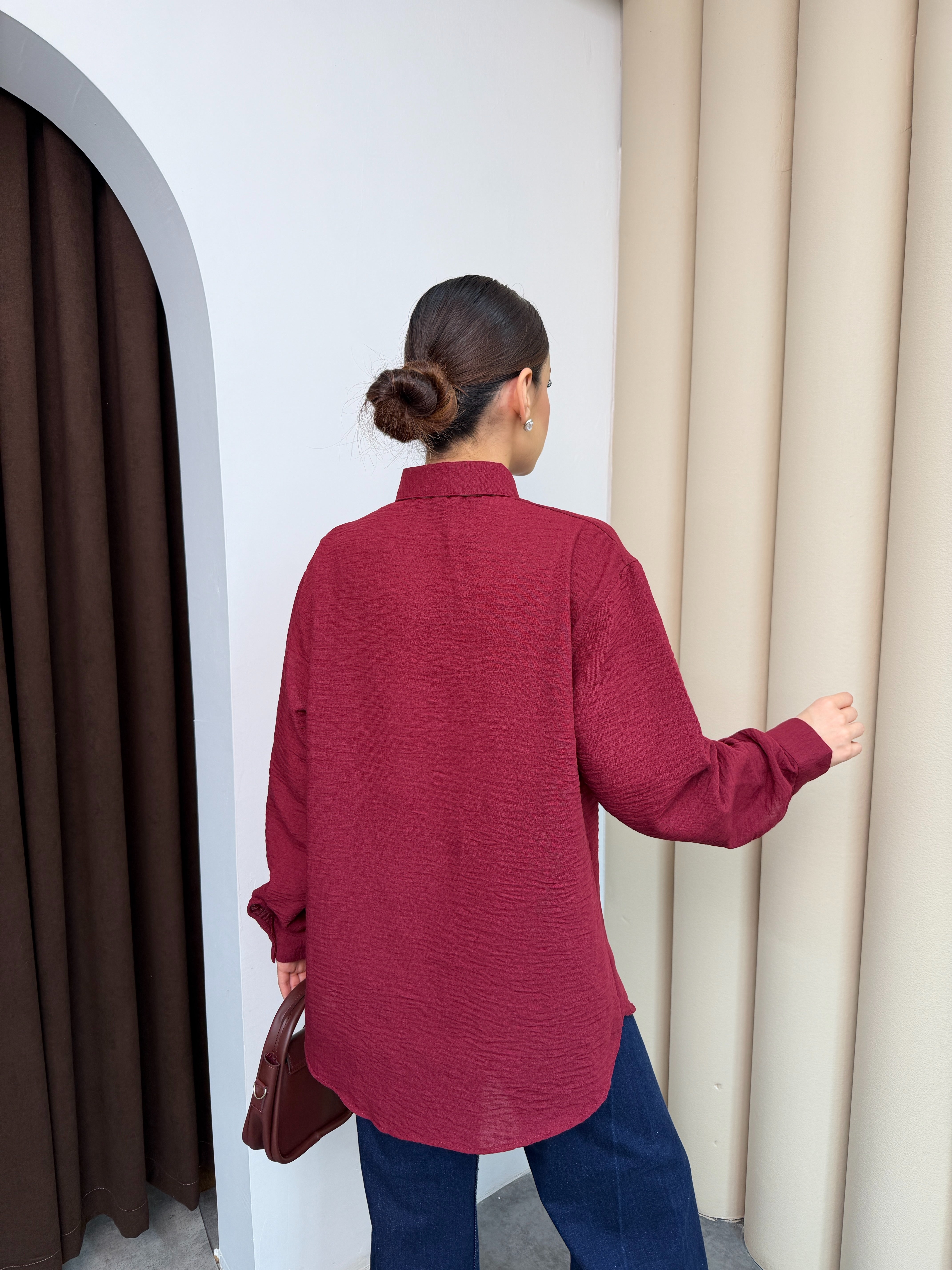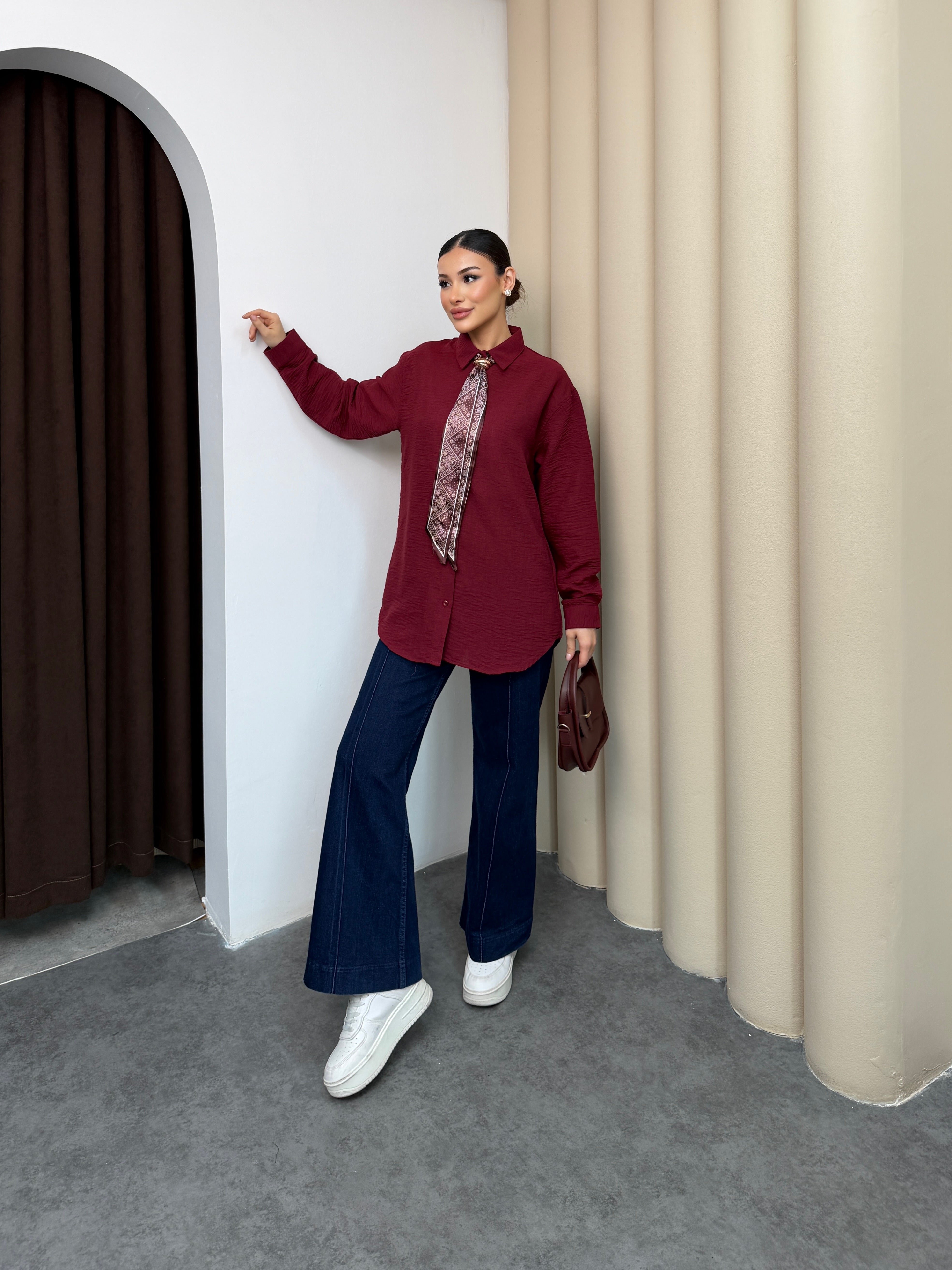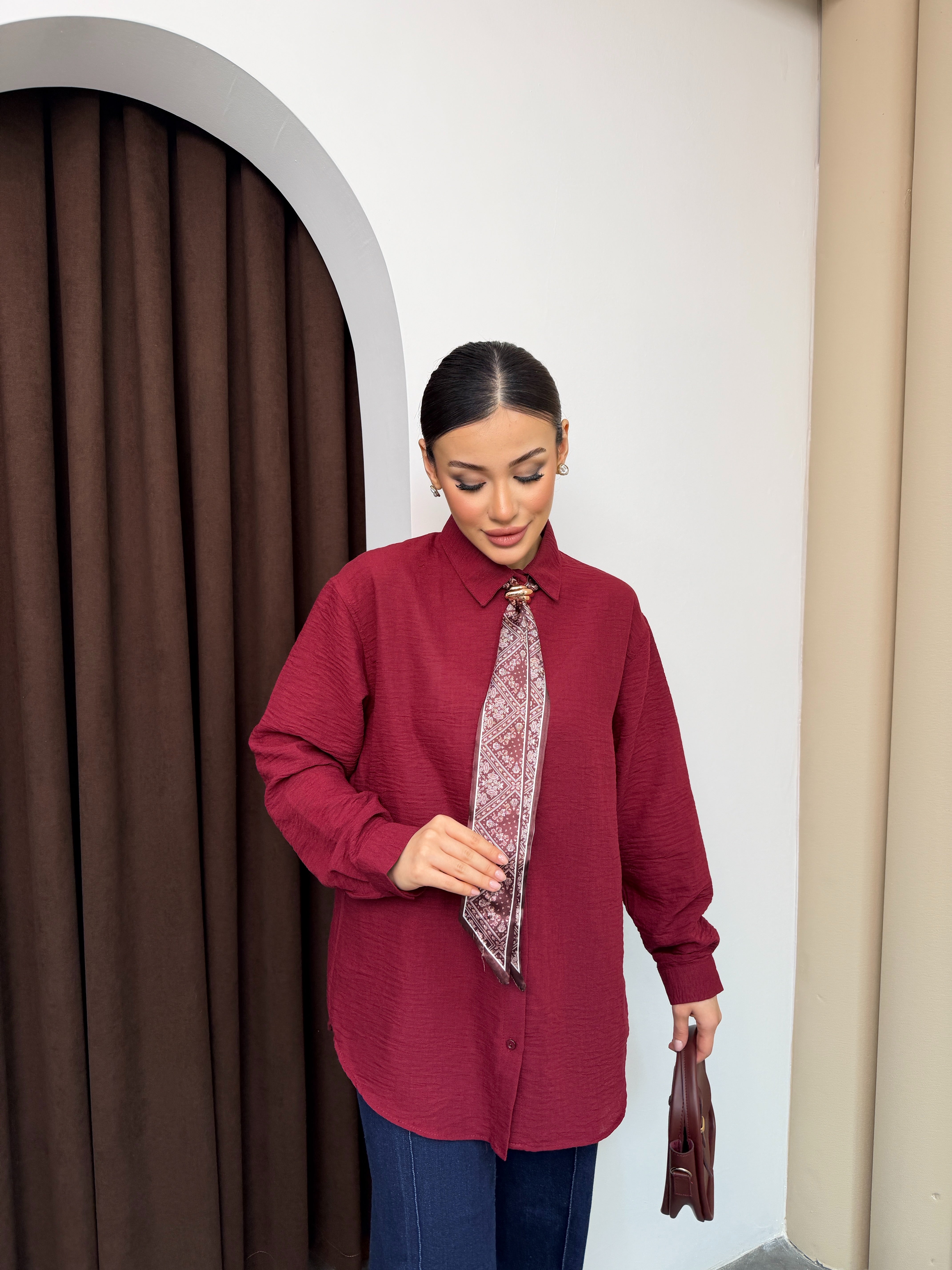 Yaka Aksesuarlı ve Fular Detaylı Dokulu Gömlek 9003 - Bordo