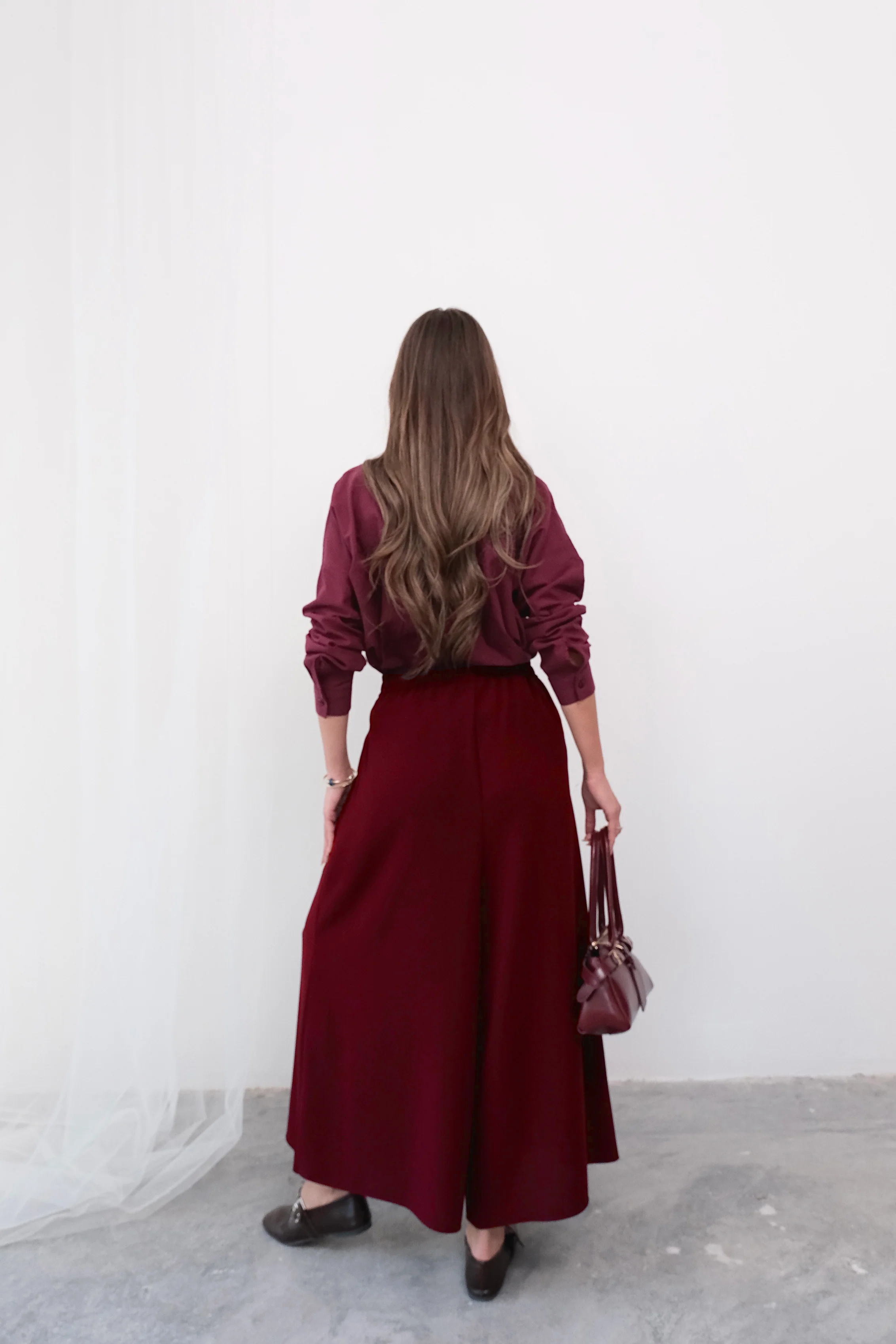 Beli Lastikli Geniş Kesim Kloş Pantolon Etek - Bordo
