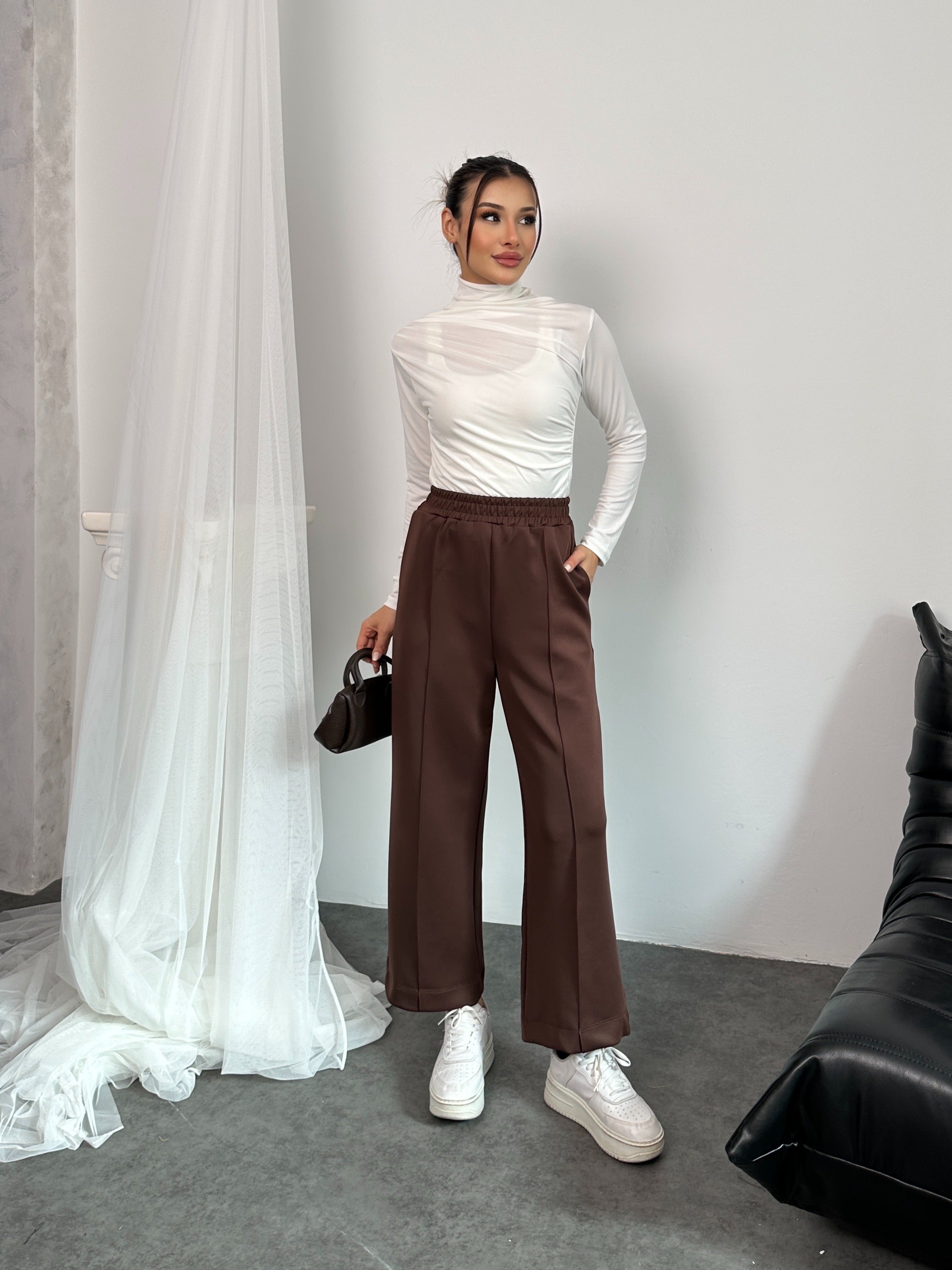 Beli Lastikli Scuba Kumaş Pantolon 8935 - Kahverengi