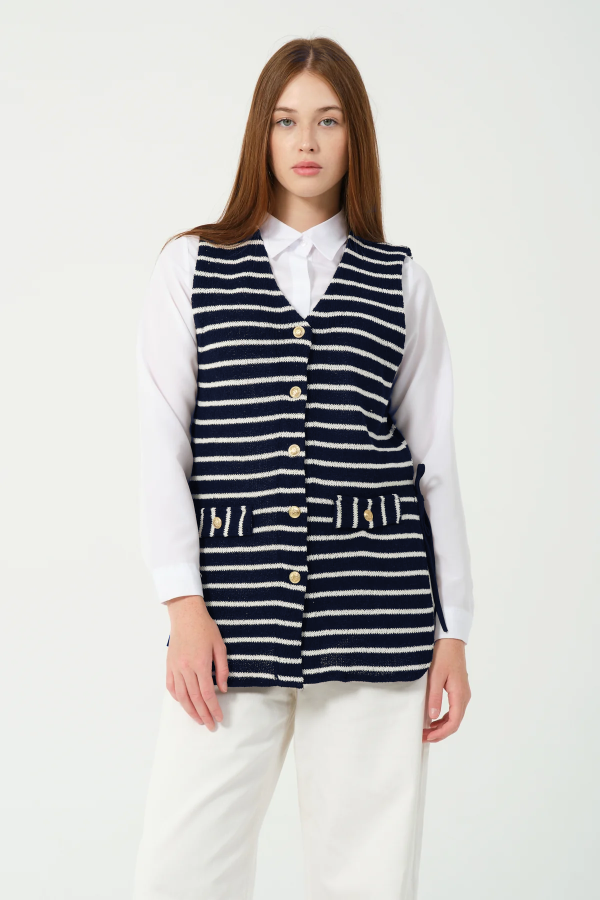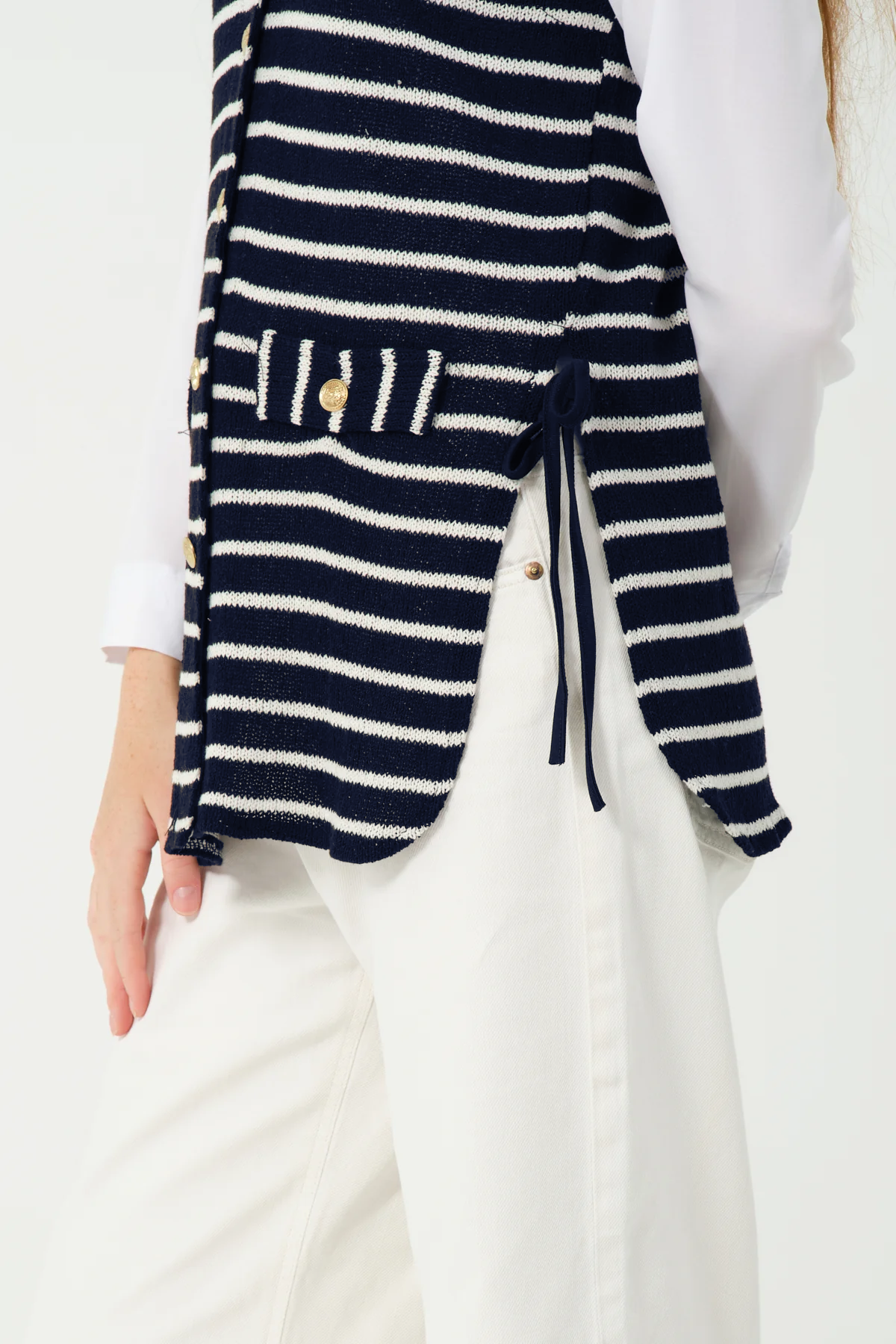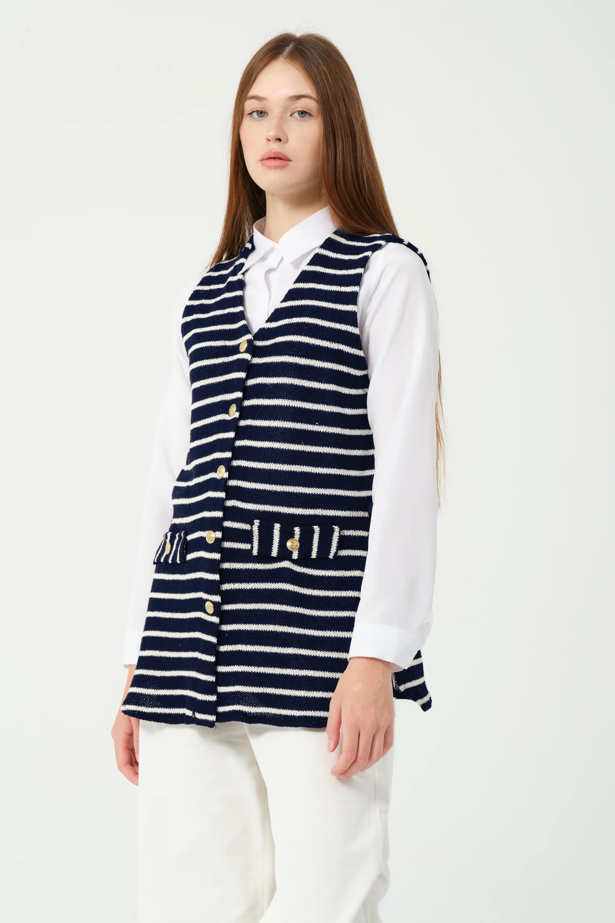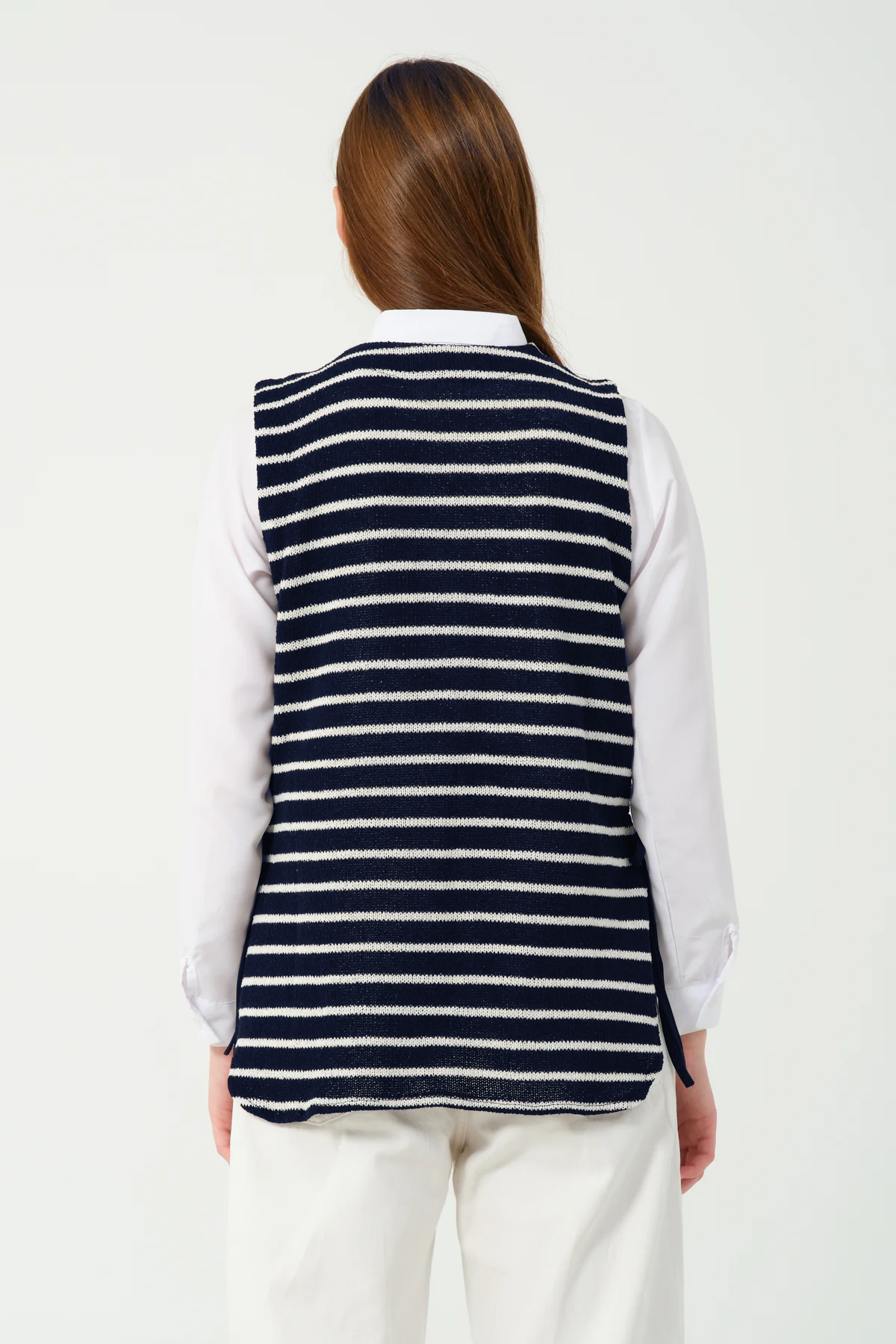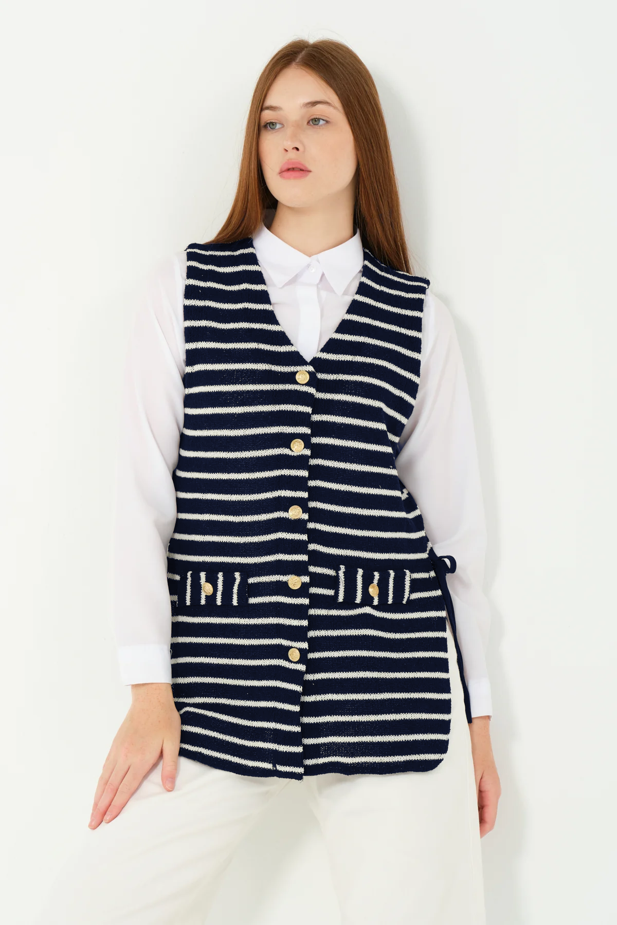 HatunAtila Çizgili Triko Yelek 7707 Lacivert