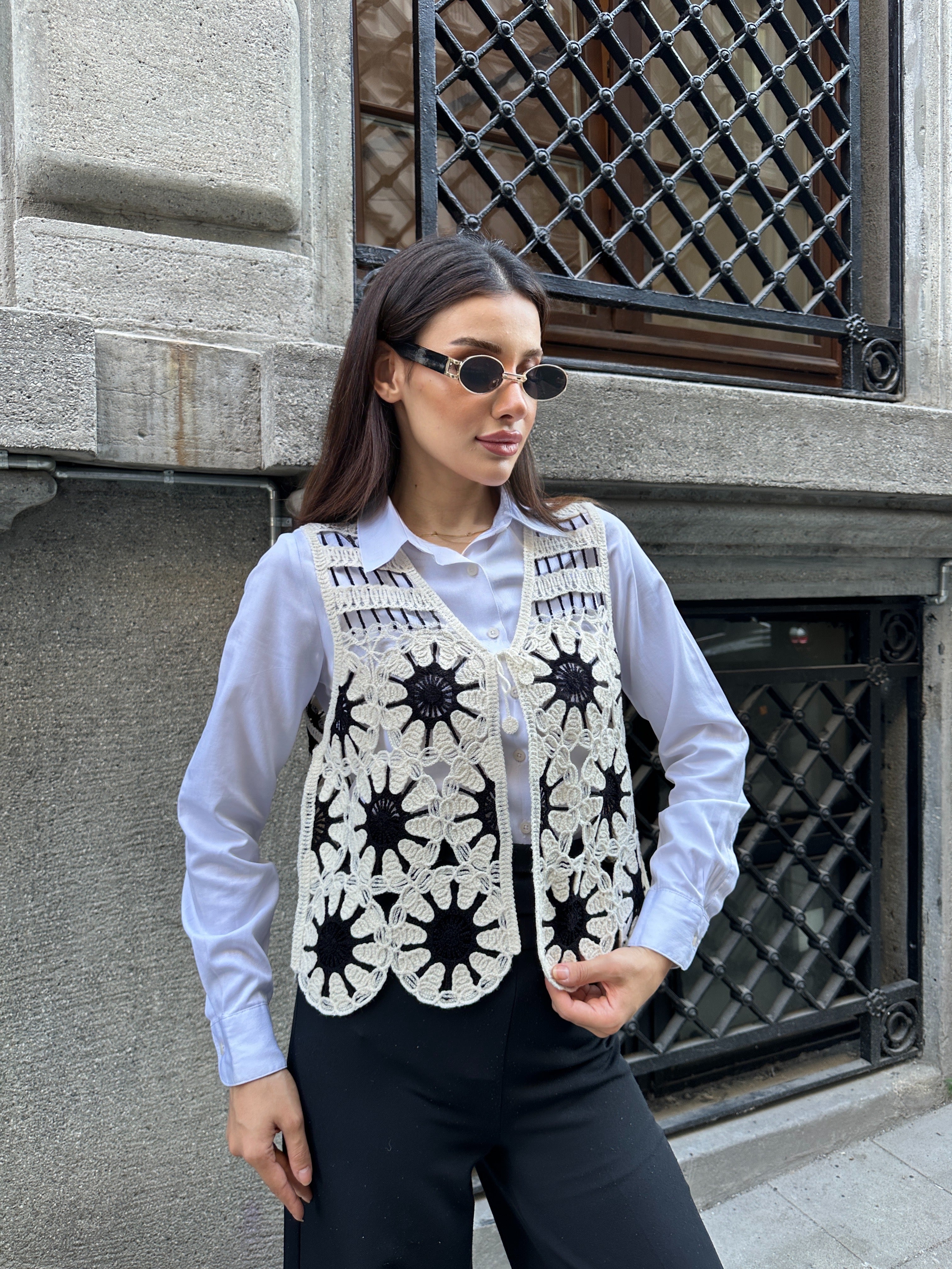 HatunAtila Desenli Akrilik Süzene Yelek 5197 - Siyah
