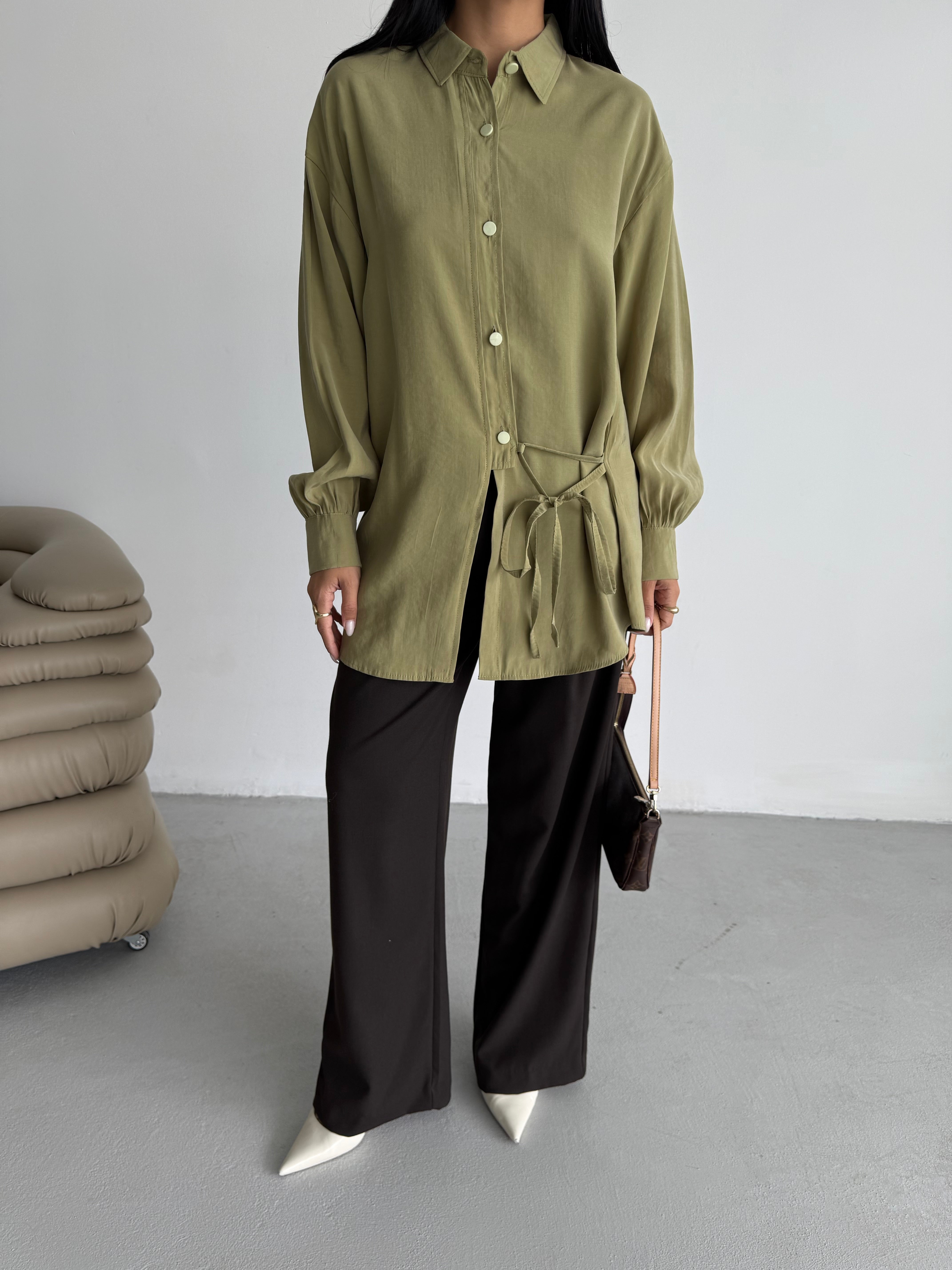 Yandan Bağlamalı Oversize Uzun Kollu Gömlek 2513 - Haki
