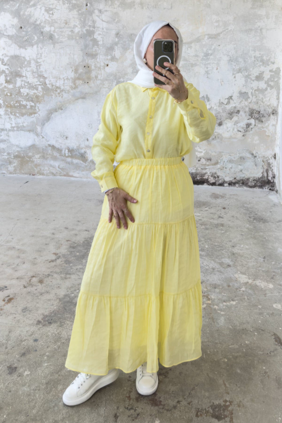 Rahat Kesim Beli Lastikli Kat Kat Uzun Etek 5213 - Sarı
