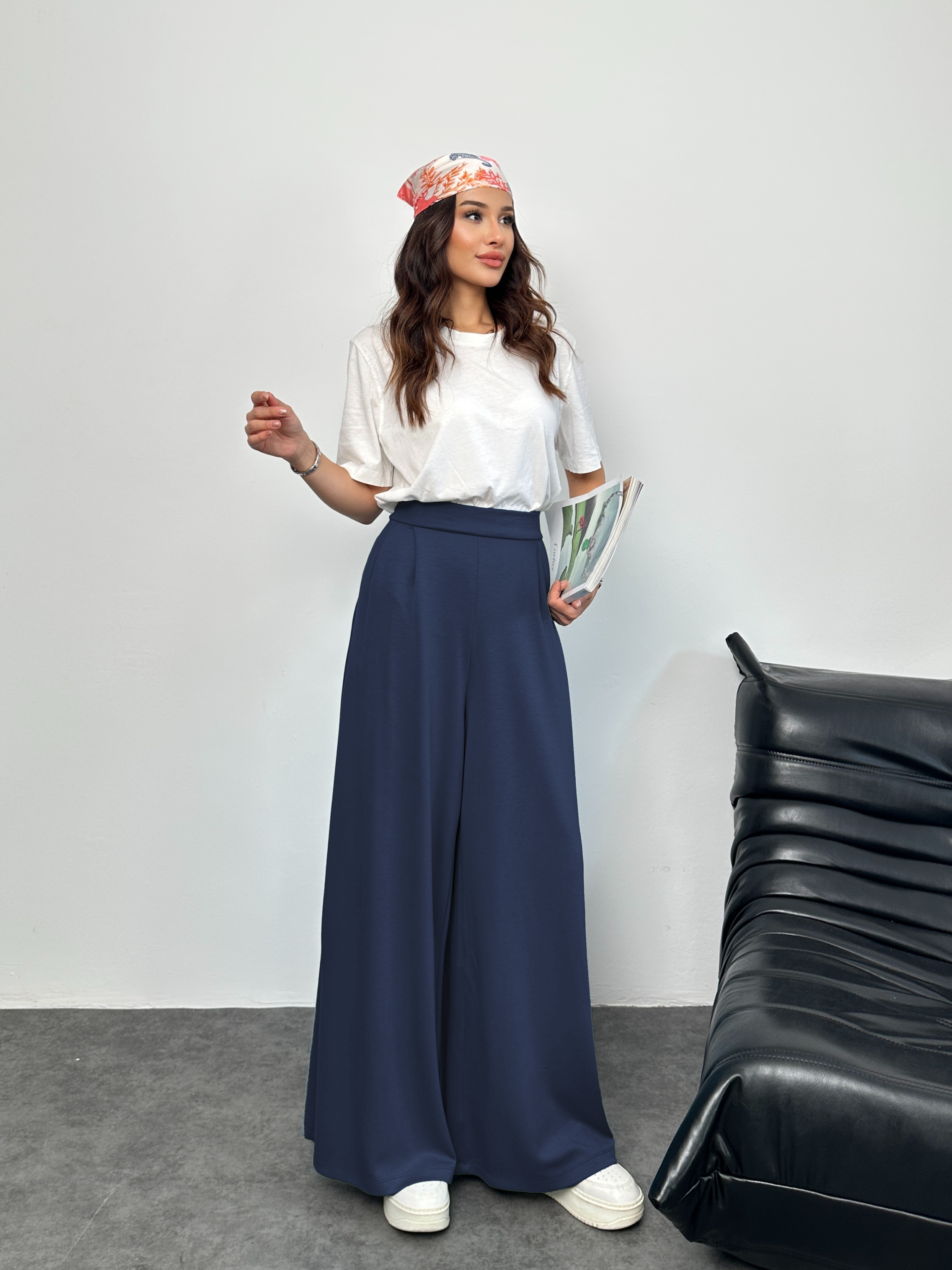 Arka Beli Lastikli Pileli Detaylı Oysho Geniş Paça Palazzo Pantolon 8903 - Lacivert