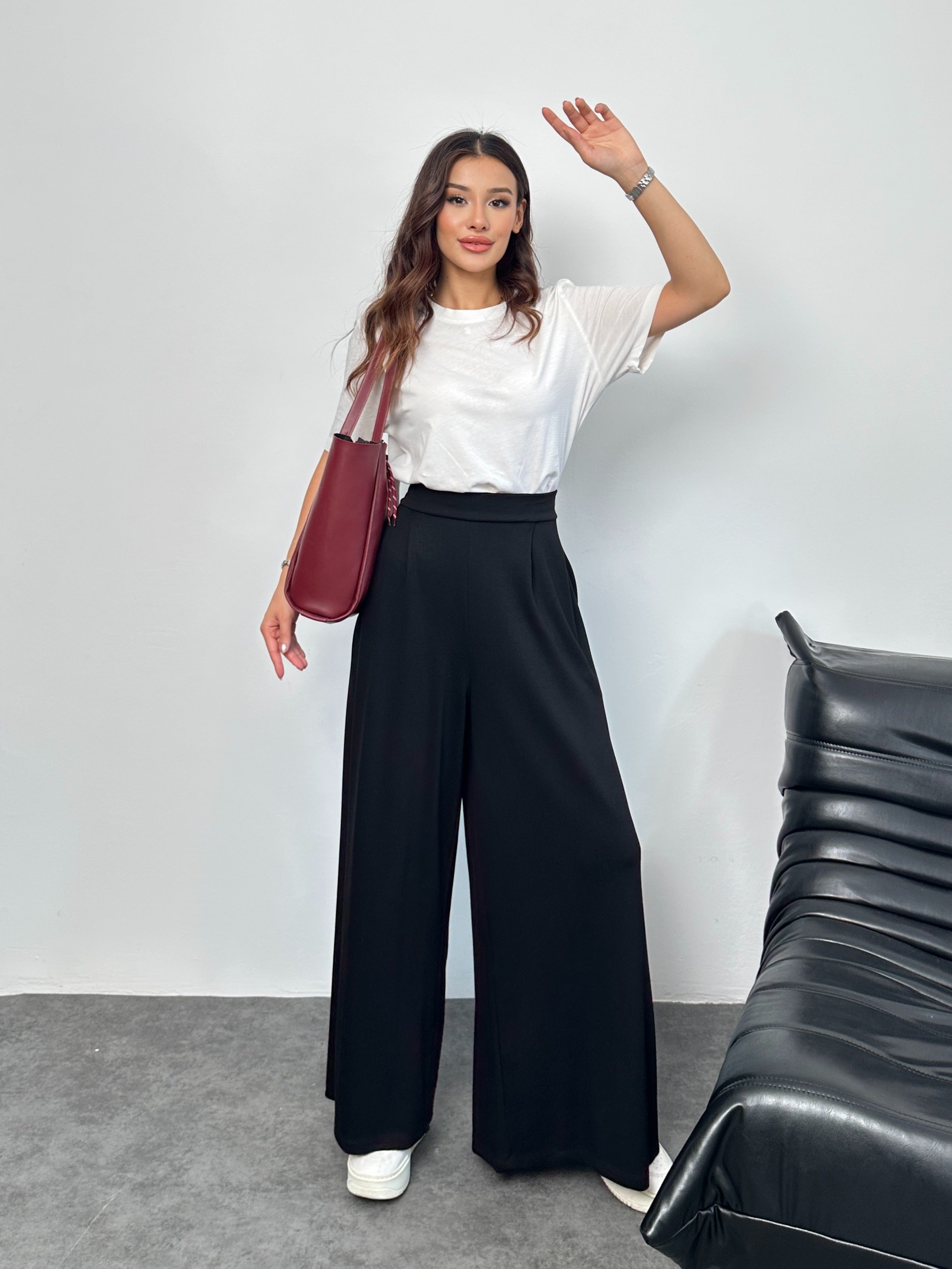 Şıklığı ve konforu mükemmel bir şekilde birleştiren palazzo pantolonumuzla gardırobunuza modern bir dokunuş yapın. Hafif ve akışkan kumaşı sayesinde hareketlerinizi kısıtlamaz, gün boyu rahat bir kullanım sunar.