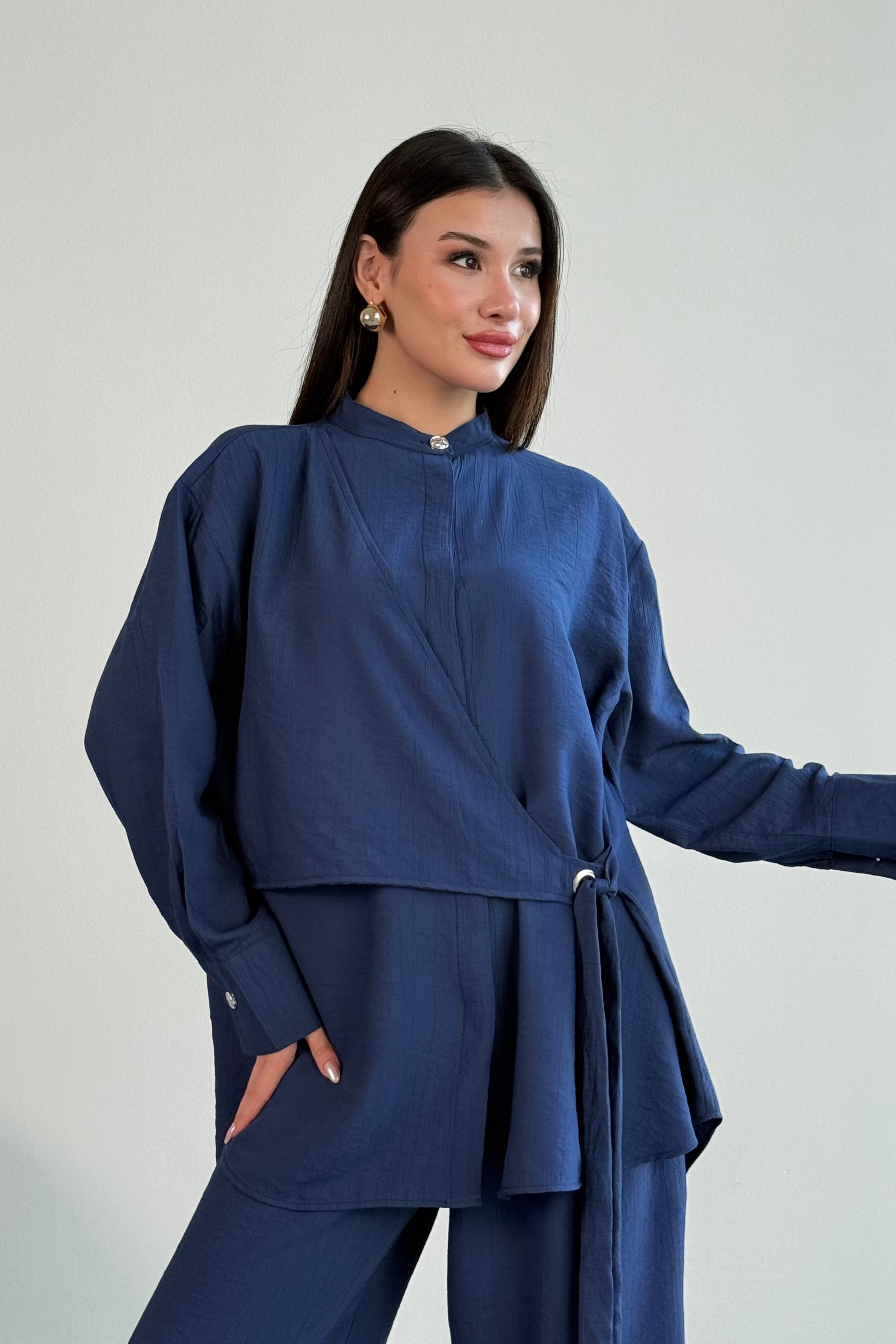 Bağlama Detaylı Gömlek ve Geniş Paça Pantolon İkili Takım 2519 - Lacivert