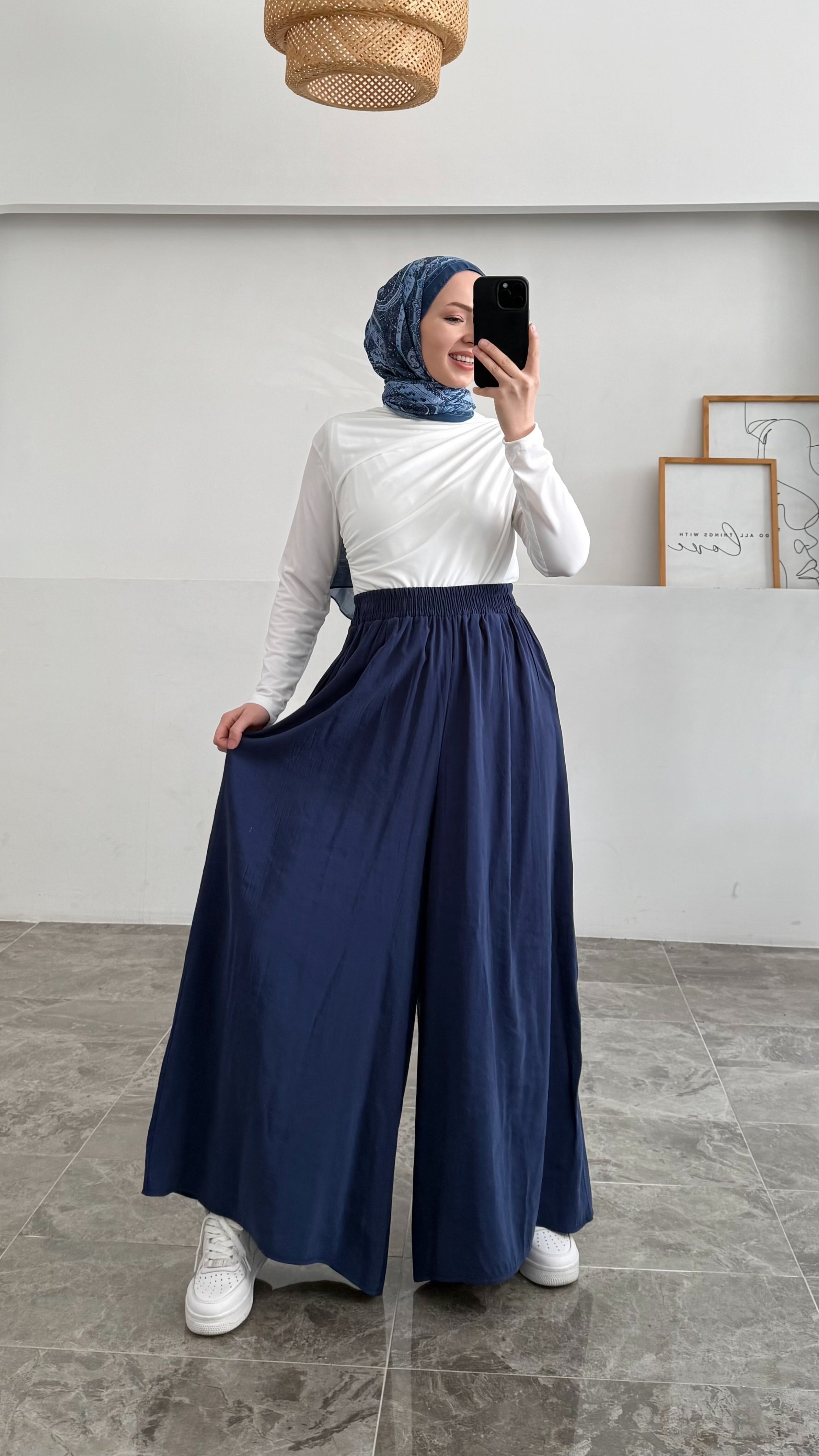 Günlük kullanım için mükemmel bir seçenek olan bu bol paça pantolon, tişörtler, bluzlar ve gömleklerle zahmetsizce kombinlenebilir. İster spor ayakkabılarla rahat bir tarz yaratın, ister şık bir bluz ve topuklu ayakkabılarla daha zarif bir görünüm elde edin. Yüksek bel kesimi de bacak boyunuzu daha uzun göstermeye yardımcı olur.