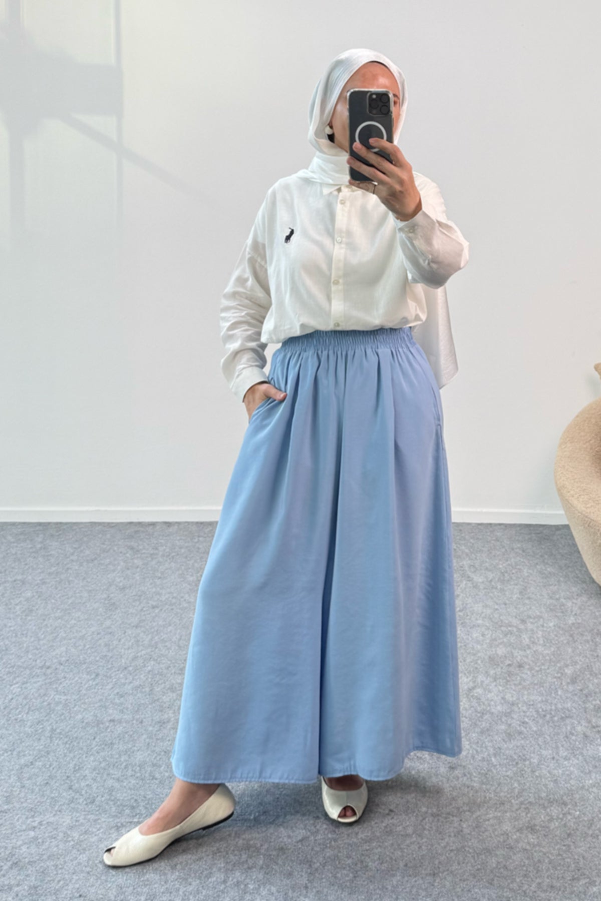 Beli Lastikli Geniş Paça Modal Etekli Pantolon - Bebek Mavi