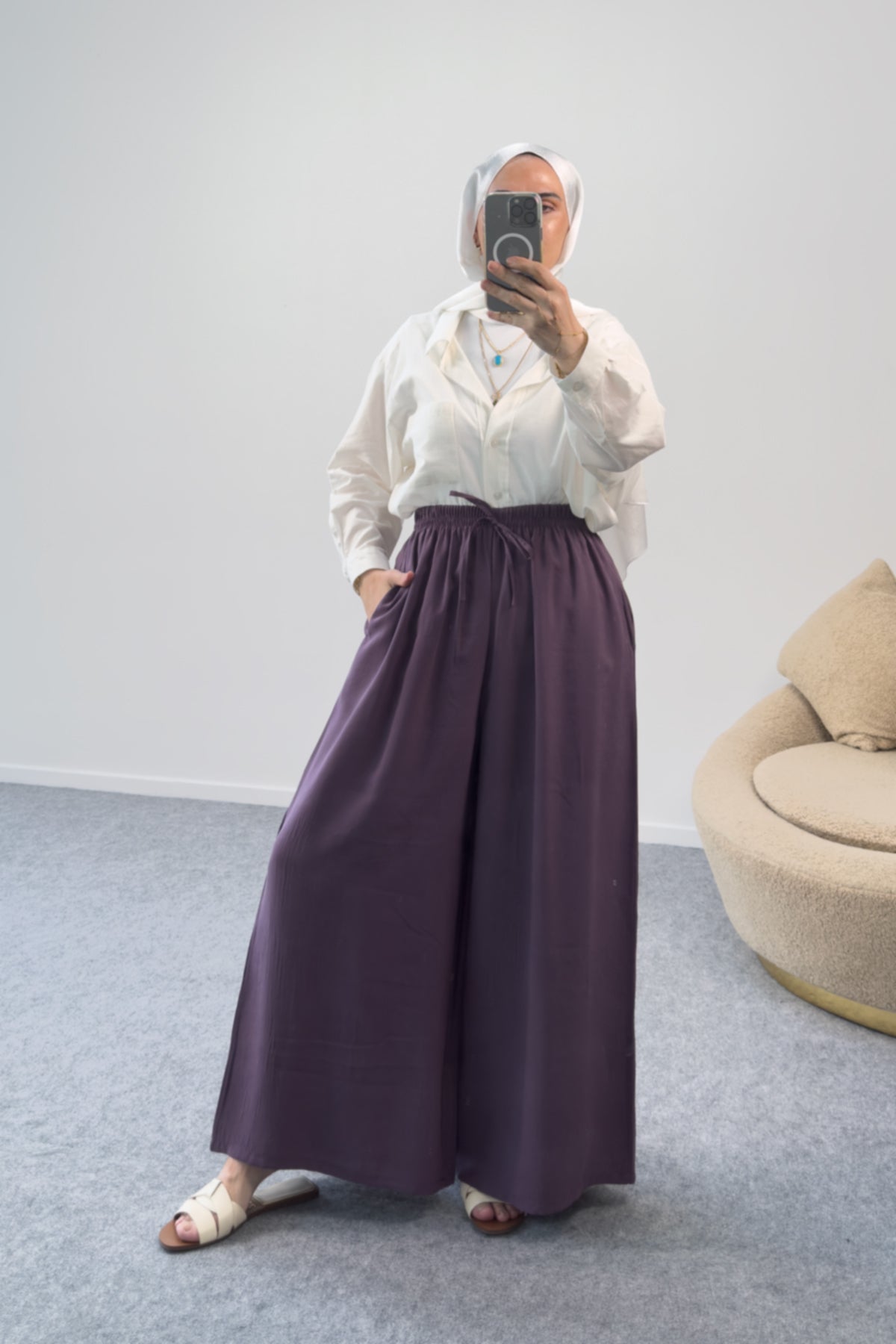 Beli Lastikli Salaş Palazzo Modal Pantolon 5221 - Mürdüm