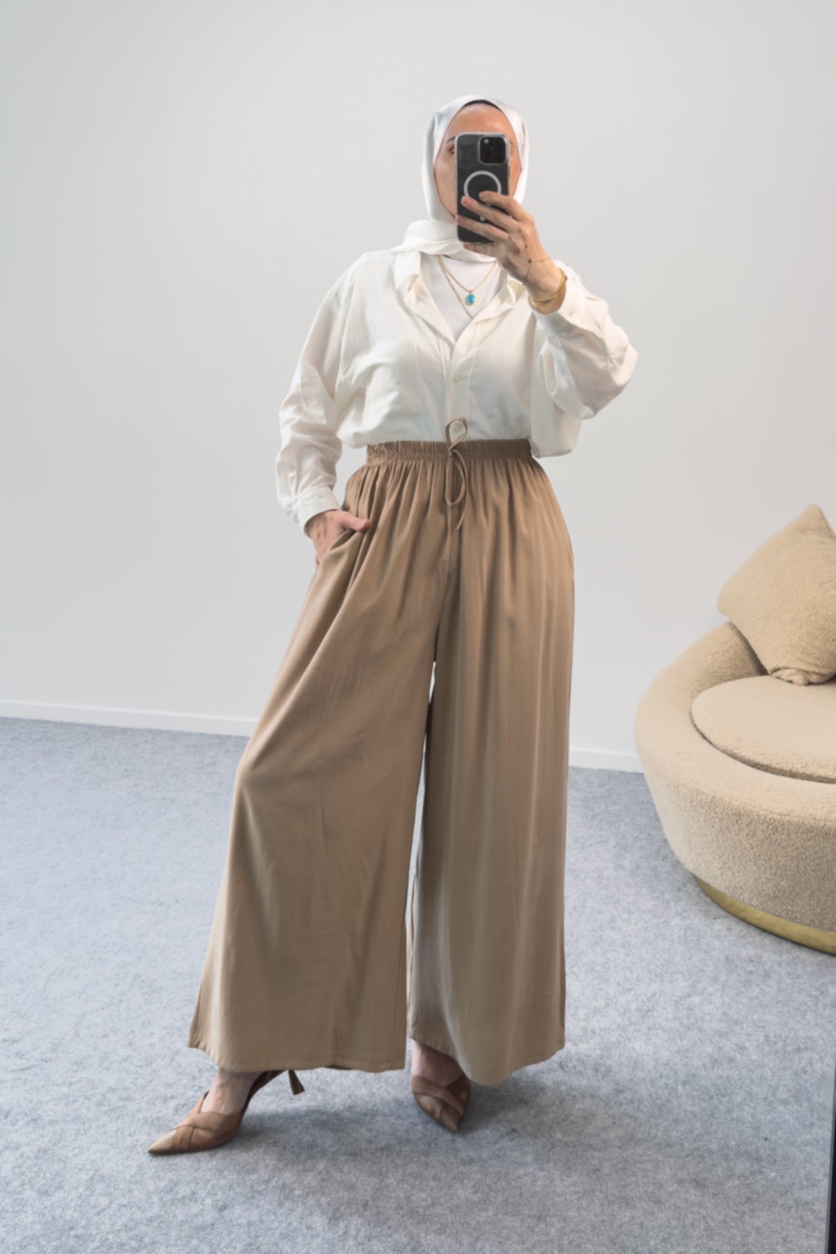 Beli Lastikli Salaş Palazzo Modal Pantolon 5221 - Vizon