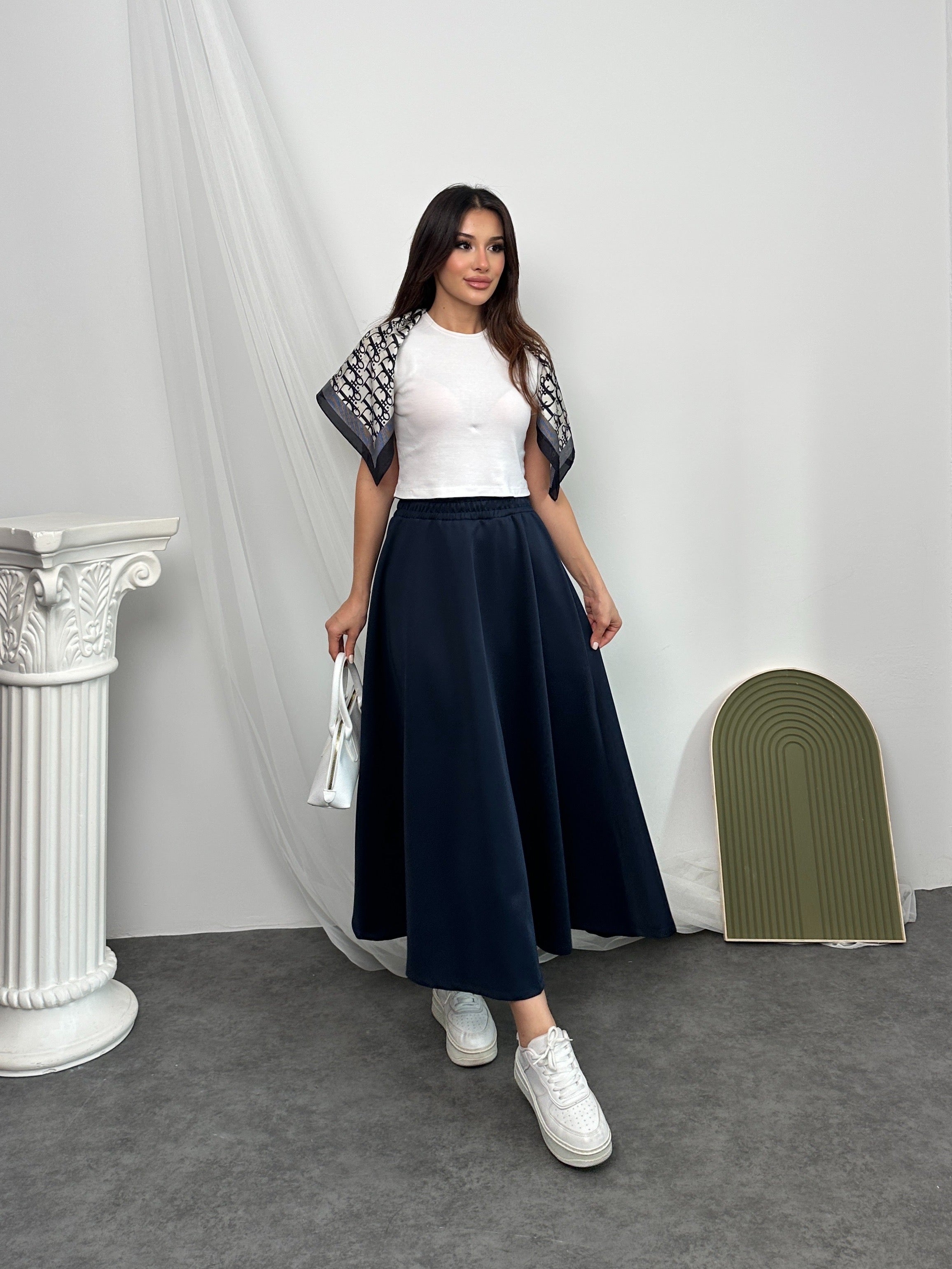 Beli Lastikli Scuba Kumaş Kloş Etek 8936 - Lacivert