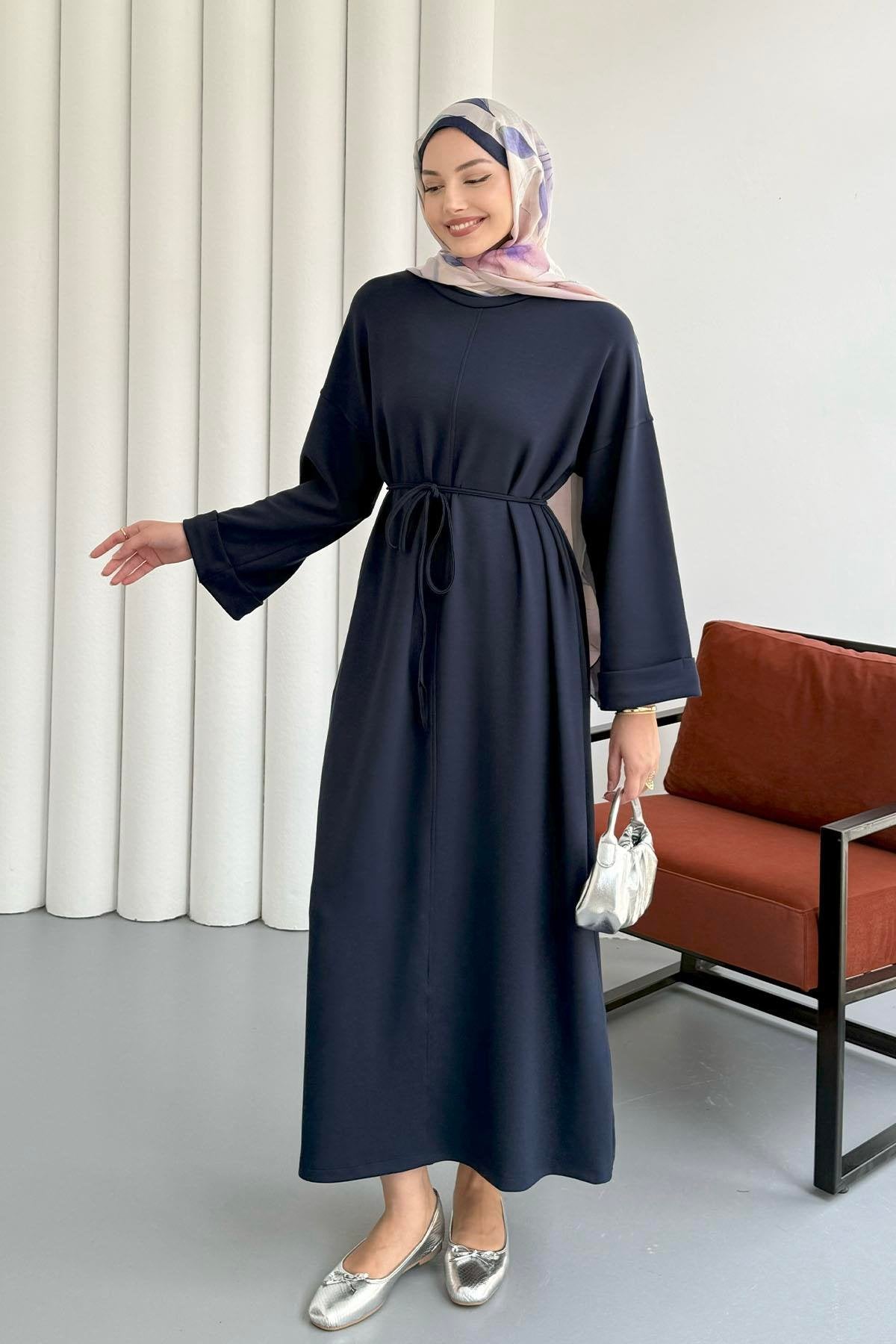 Bisiklet yaka Bel Bağlamalı Uzun Oysho Tunik Elbise 8904 - Lacivert