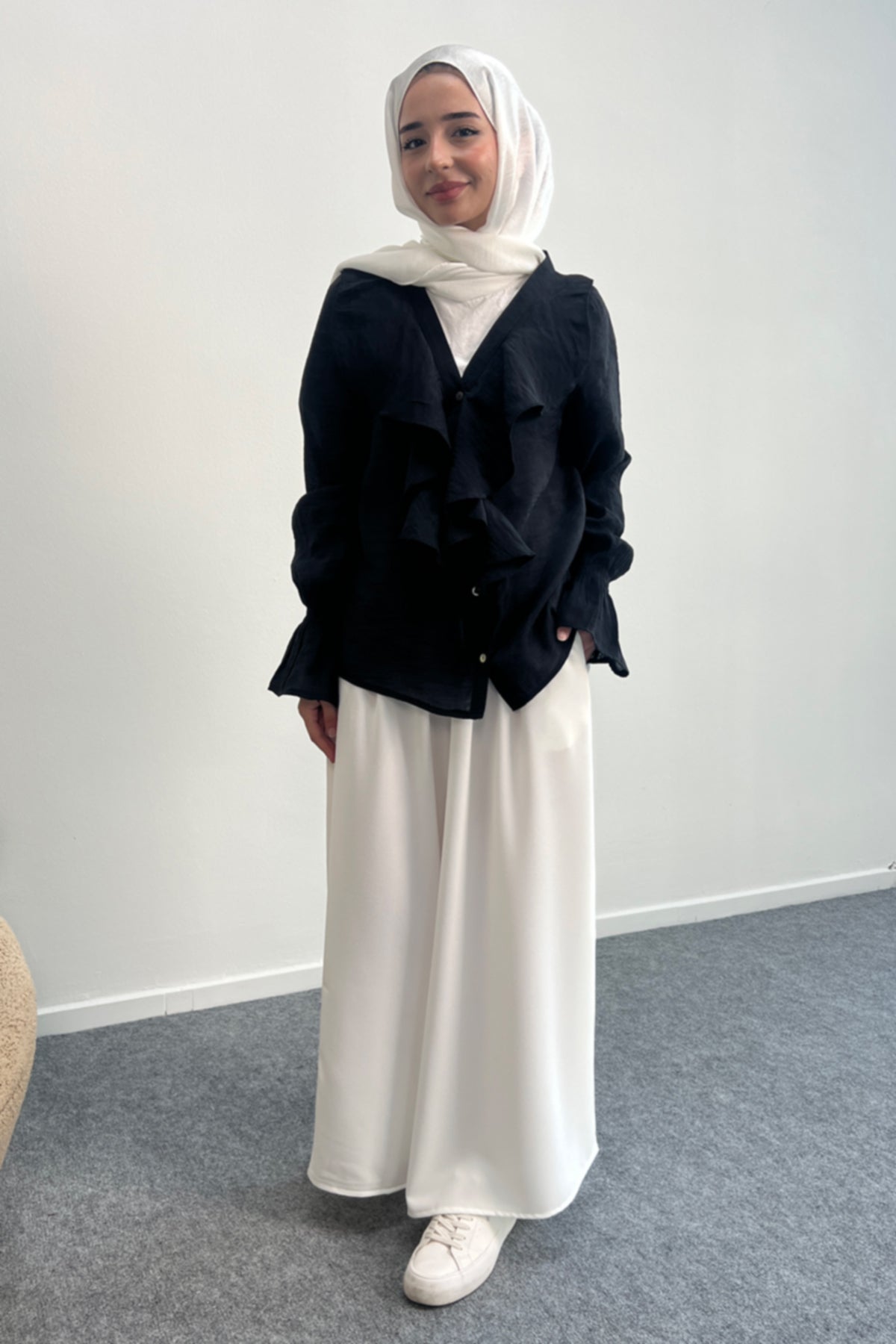 Fırfır Detaylı Uzun Kollu Gömlek 8854 - Siyah