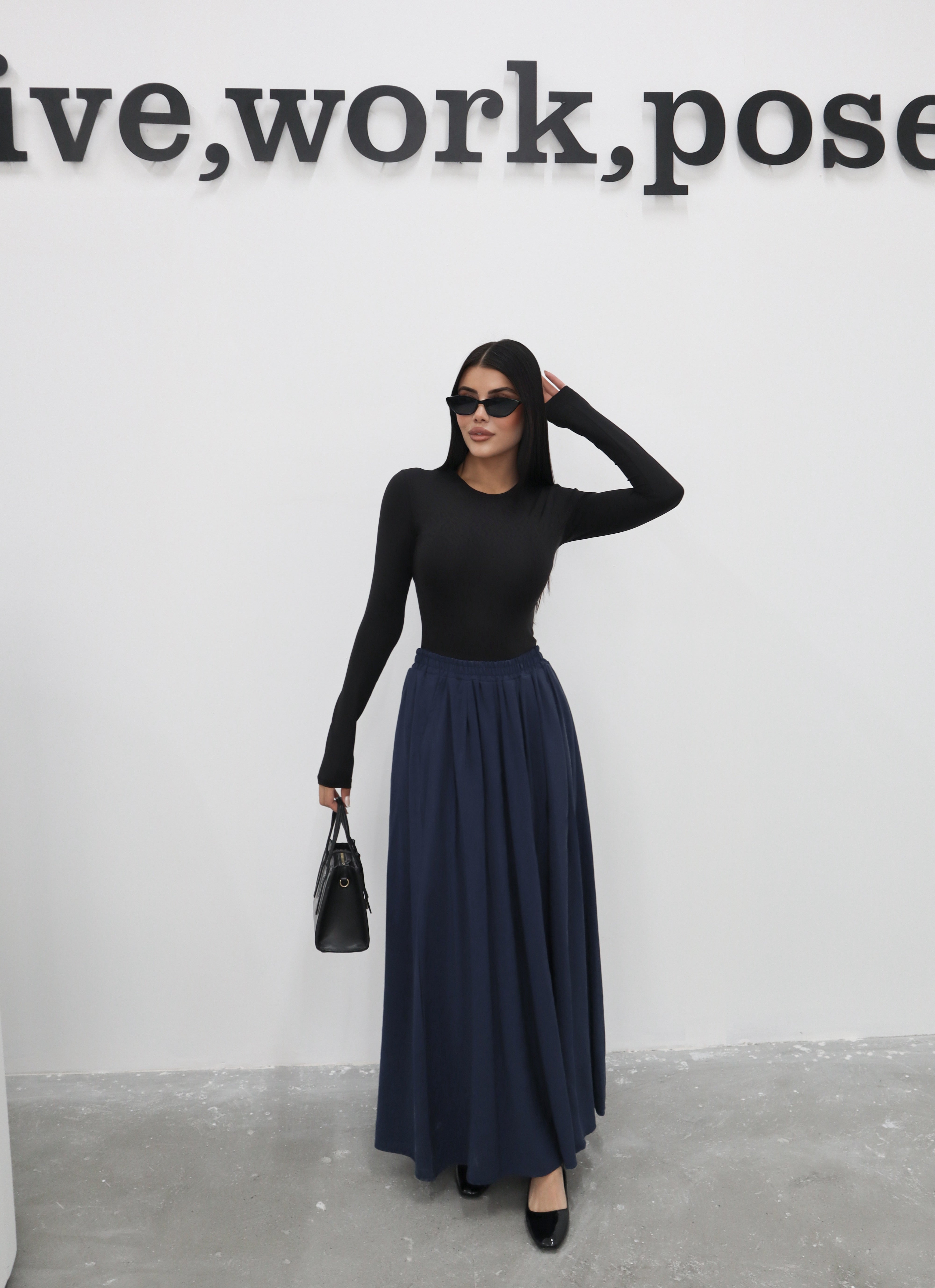 Gardırobunuzun vazgeçilmezi olacak duble kumaş beli lastikli etek, şıklığı ve rahatlığı bir arada sunuyor. Yumuşak dokusu ve dökümlü kesimi sayesinde gün boyu konfor sağlarken, beli lastikli yapısı ile de kolayca üzerinize uyum sağlar. Maksi boy tasarımı ve klasik  her ortamda zarif bir görünüm yaratmanıza yardımcı olur.