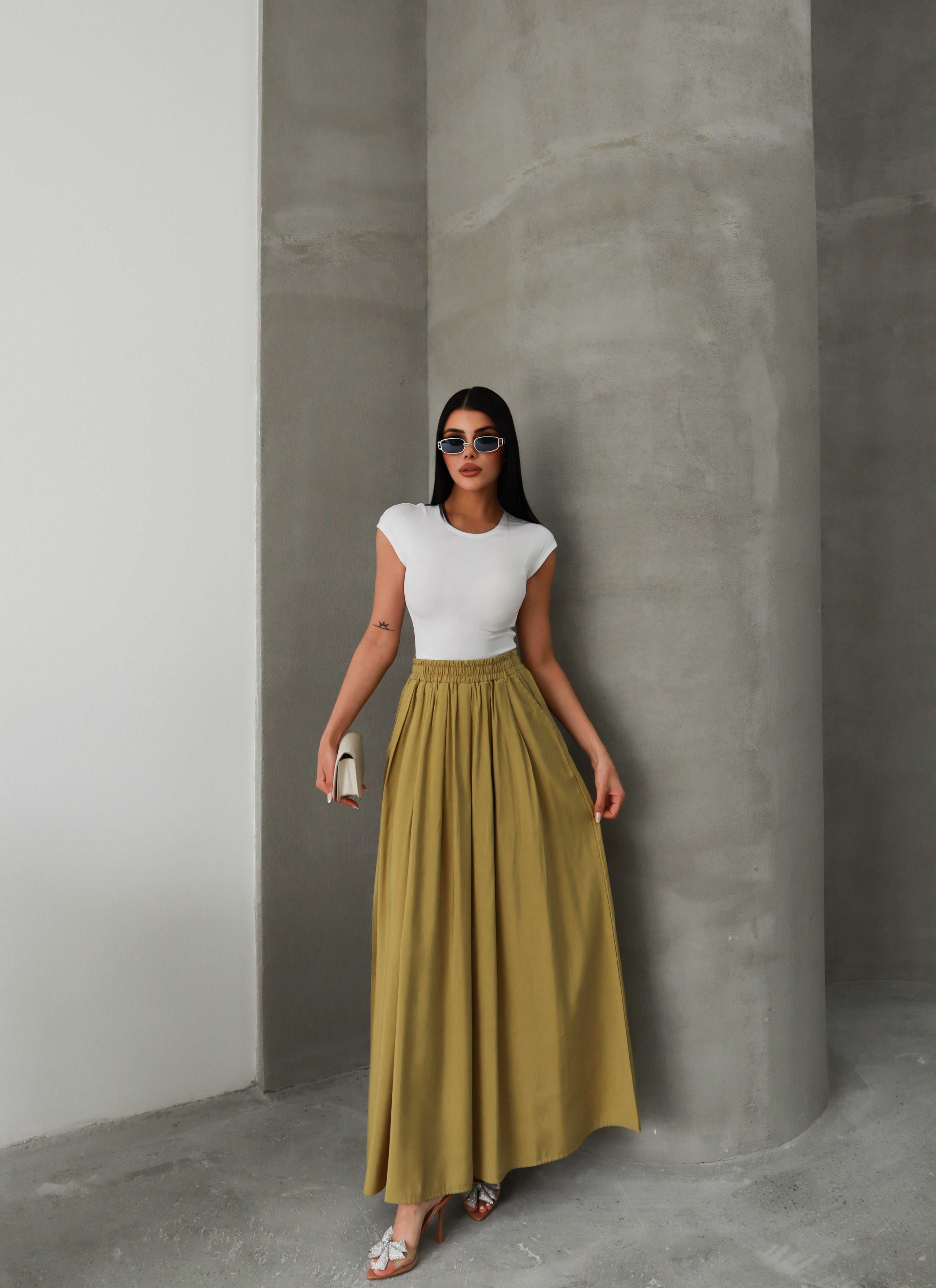 Farklı renk ve desenlerdeki üstlerle kolayca kombinlenebilir. İster günlük kullanımda basic bir tişörtle, ister özel bir davette şık bir bluzla tamamlayarak kendi tarzınızı yansıtabilirsiniz. Yazlık ve mevsimlik kullanıma uygun olan bu uzun etek, rahat kesimi sayesinde hareket özgürlüğü sunar.