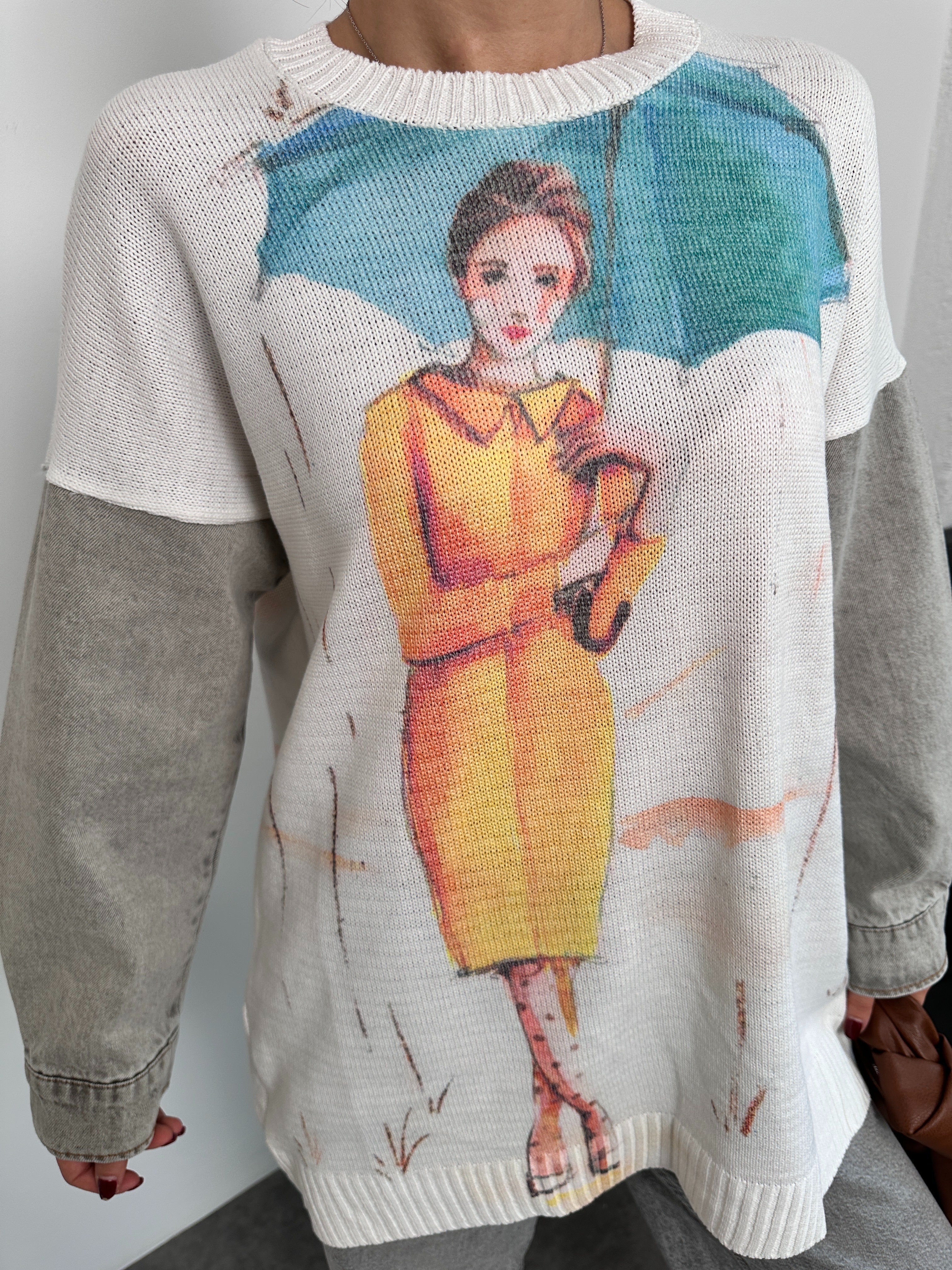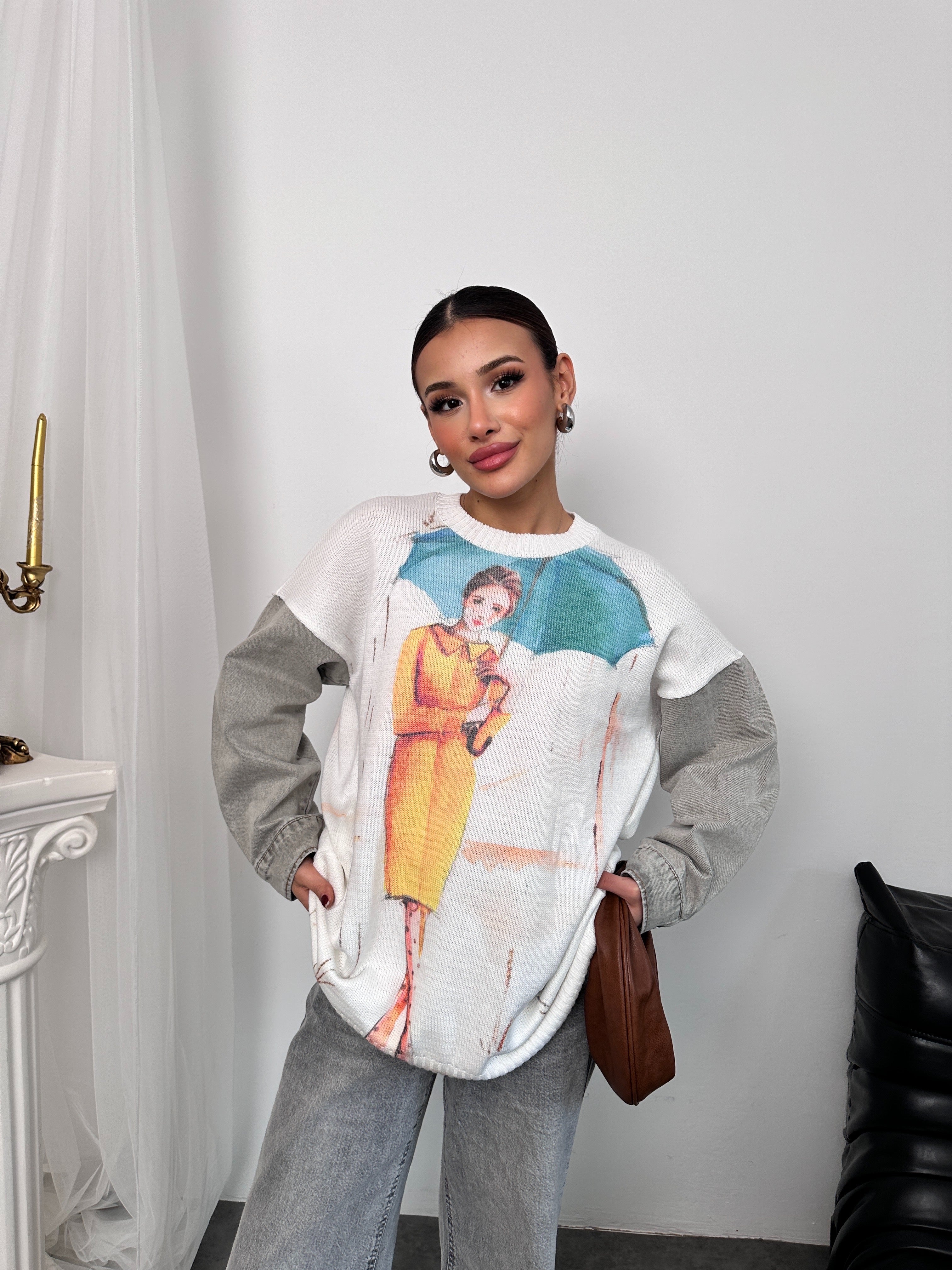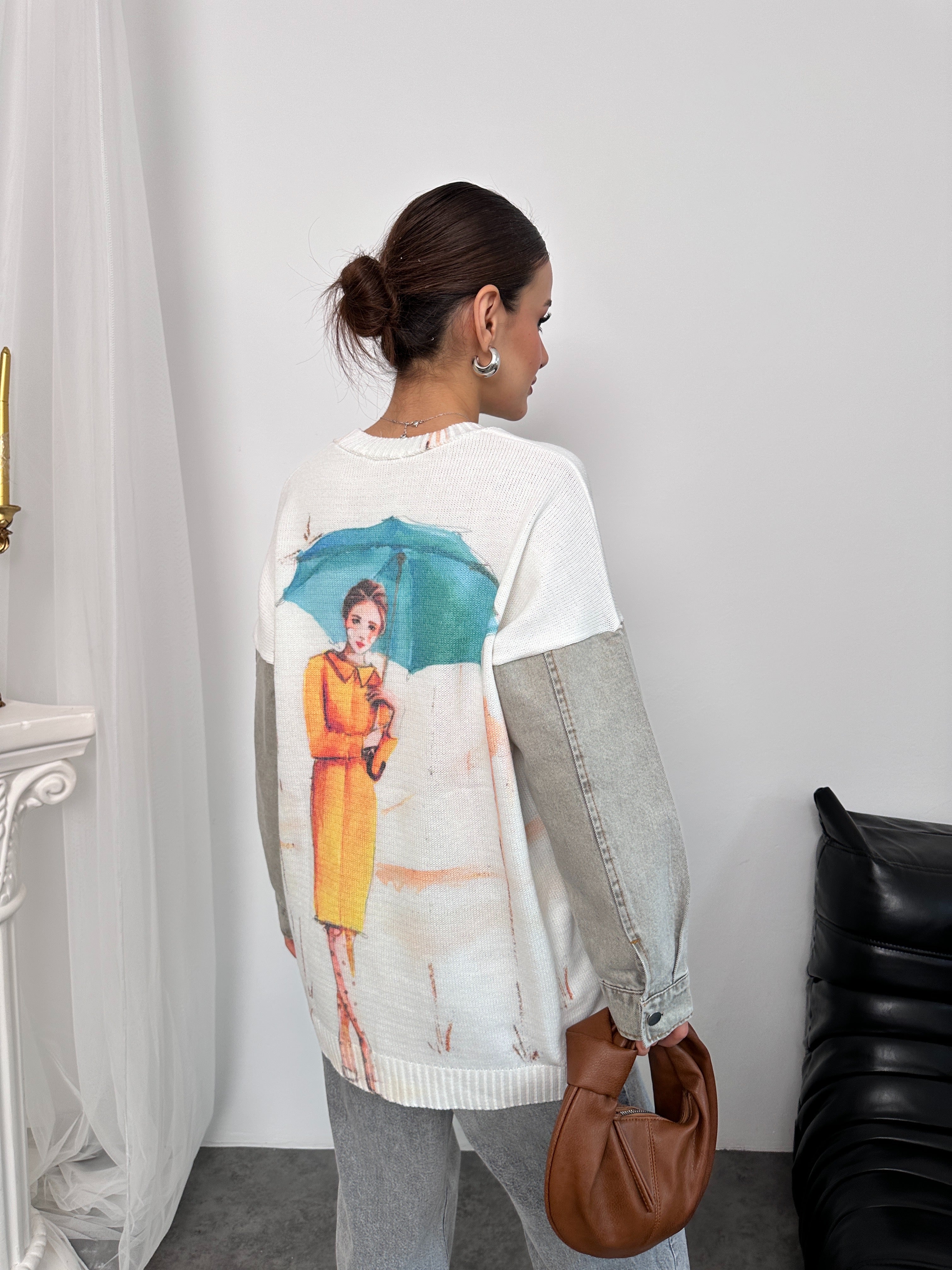 HatunAtila Desenli Bisiklet Yaka Kot Kollu Uzun Kazak - 4770-13
