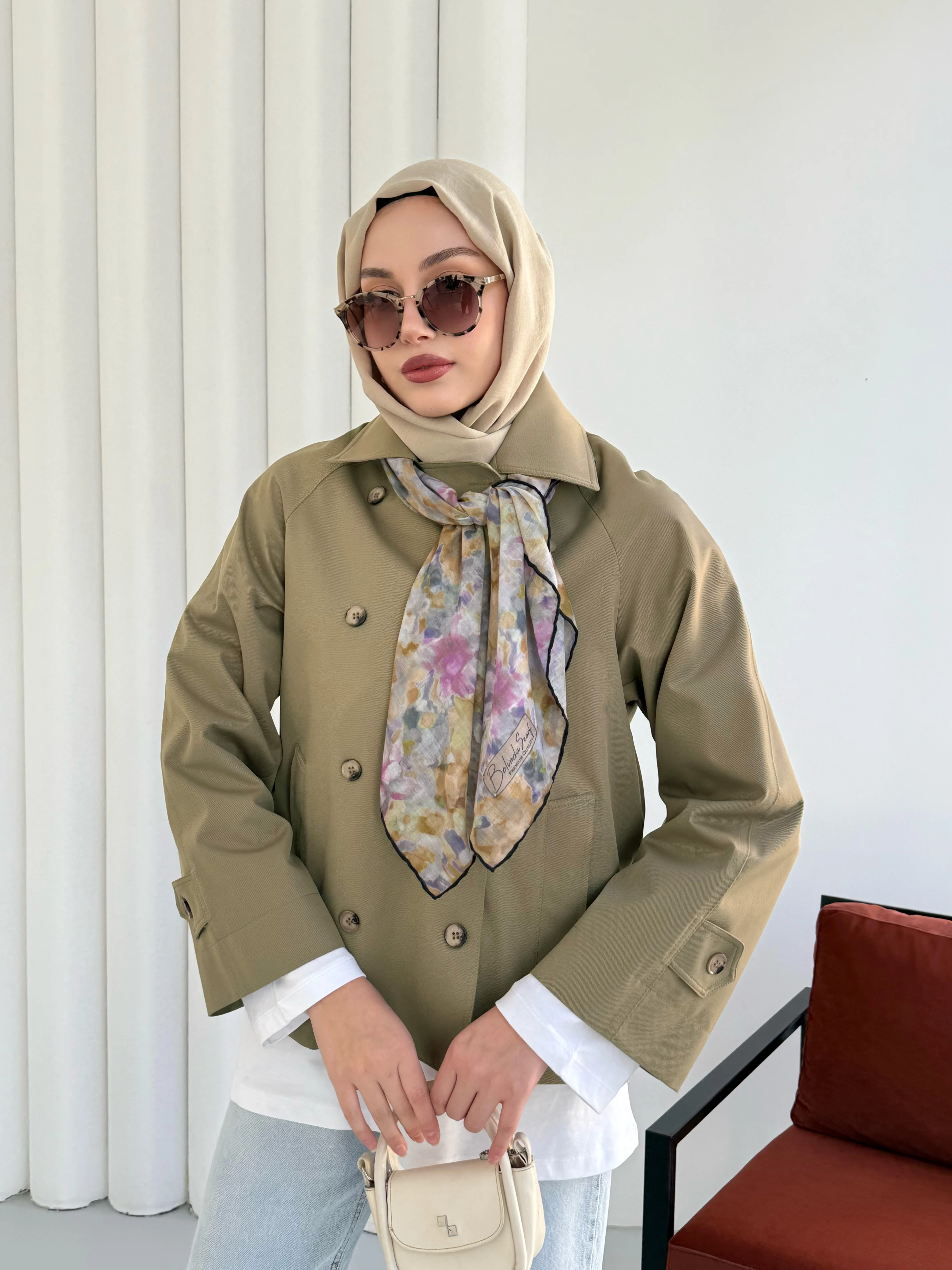Kruvaze Yaka Kısa Trençkot 999001 - Soft Haki