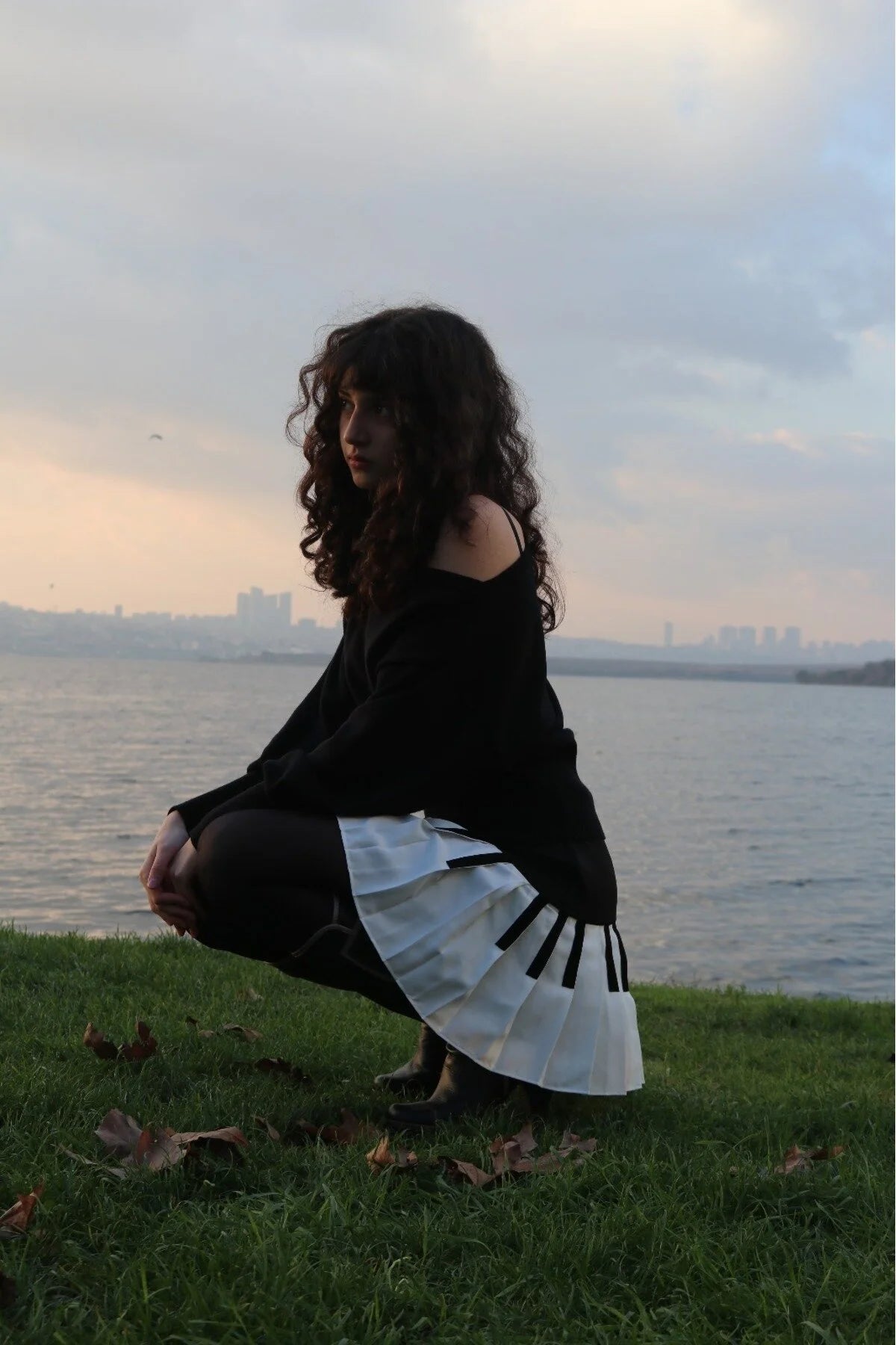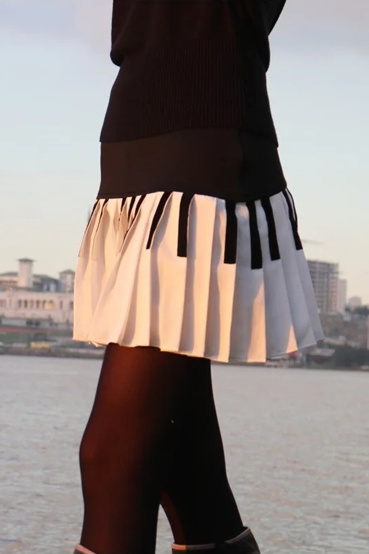 Müzik ve modayı birleştiren eşsiz bir parça: Piyano Tuşları Desenli Piliseli Mini Etek. Siyah beyaz kontrastı ve gerçekçi piyano tuşu görünümüyle bu etek, tarzına eğlenceli ve cesur bir dokunuş katmak isteyenler için idealdir. Hareketli pilise (pile) detayı, etek giyildiğinde dinamik bir silüet yaratır. Yüksek belli ve mini kesimiyle bacak boyunuzu uzun gösterir. Basic siyah bir üst ve çizmelerle kombinleyerek tüm dikkatleri üzerinize çekin. Temalı partiler, sahne kostümleri veya günlük cesur stiliniz için mükemmel olan bu piyano etekle notalarınızla dans edin!