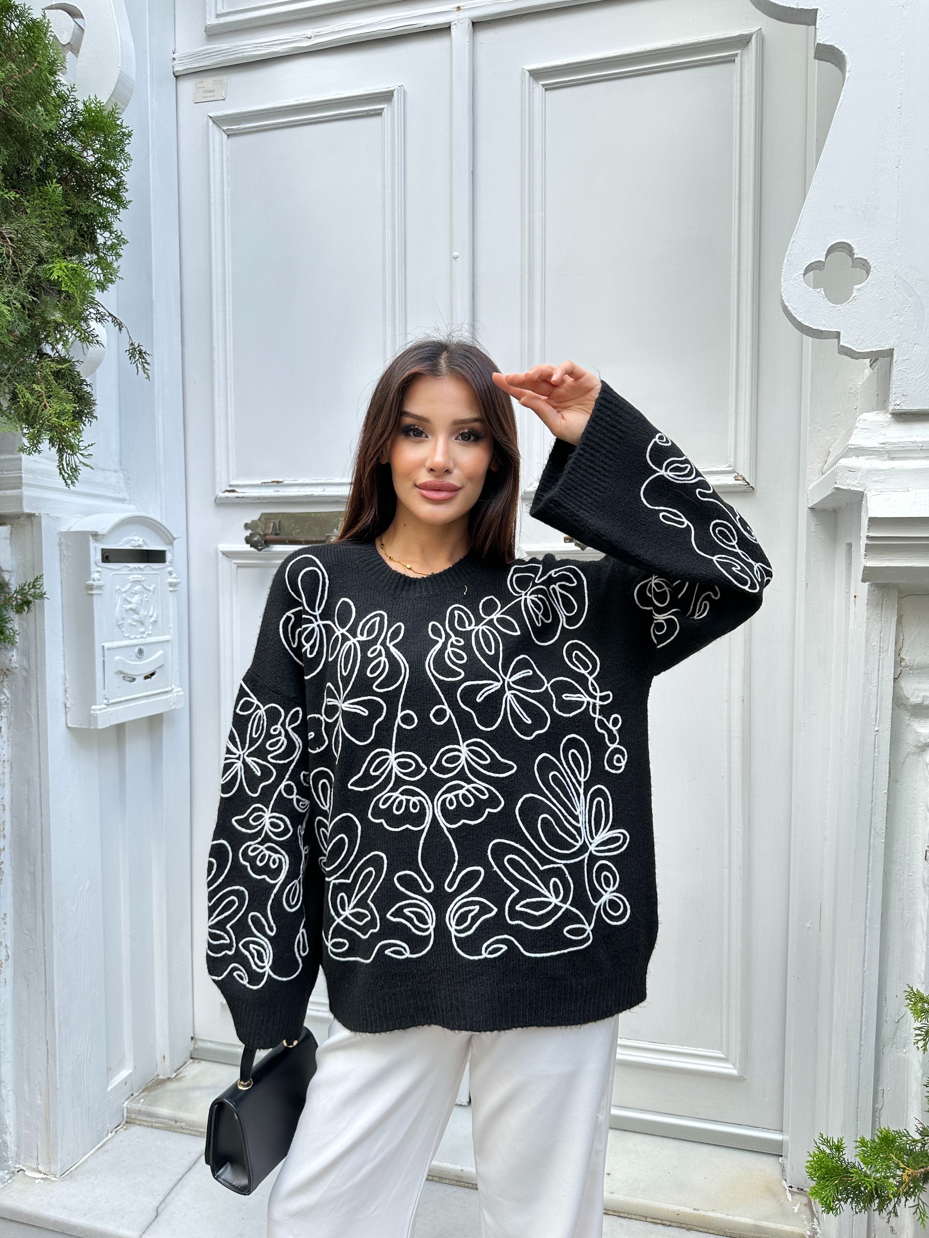 Bu sezonun en trend parçalarından biri olan nakışlı oversize şardonlu kazak, dolabınızın vazgeçilmezi olacak. Hemen sepetinize ekleyerek hem stil sahibi hem de sıcacık bir kış geçirin!